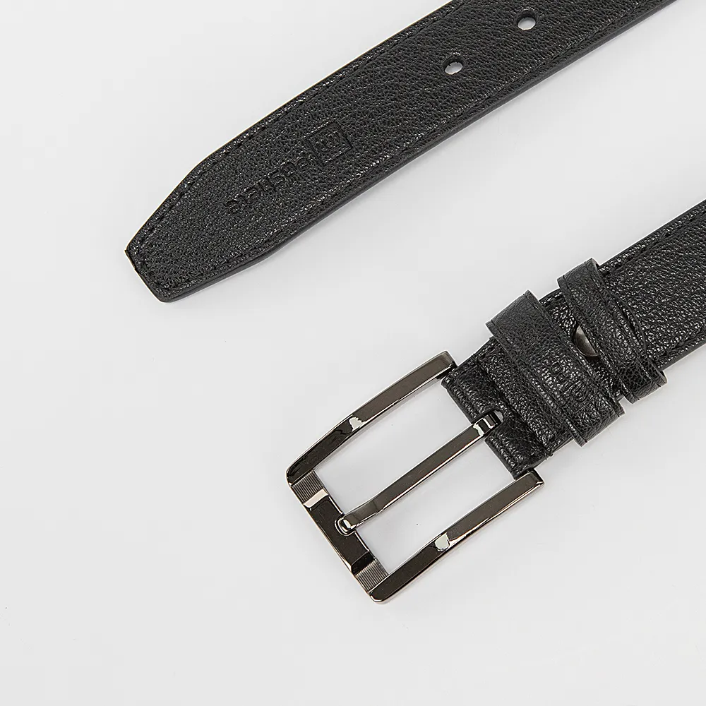 Стильный мужской ремень от бренда Poshete выполнен из натуральной мягкой кожи в черном цвете. Аксессуар дополнен открытой металлической пряжкой и кожаной шлевкой. Модель длиной 105-110 см и шириной 3,5 см.