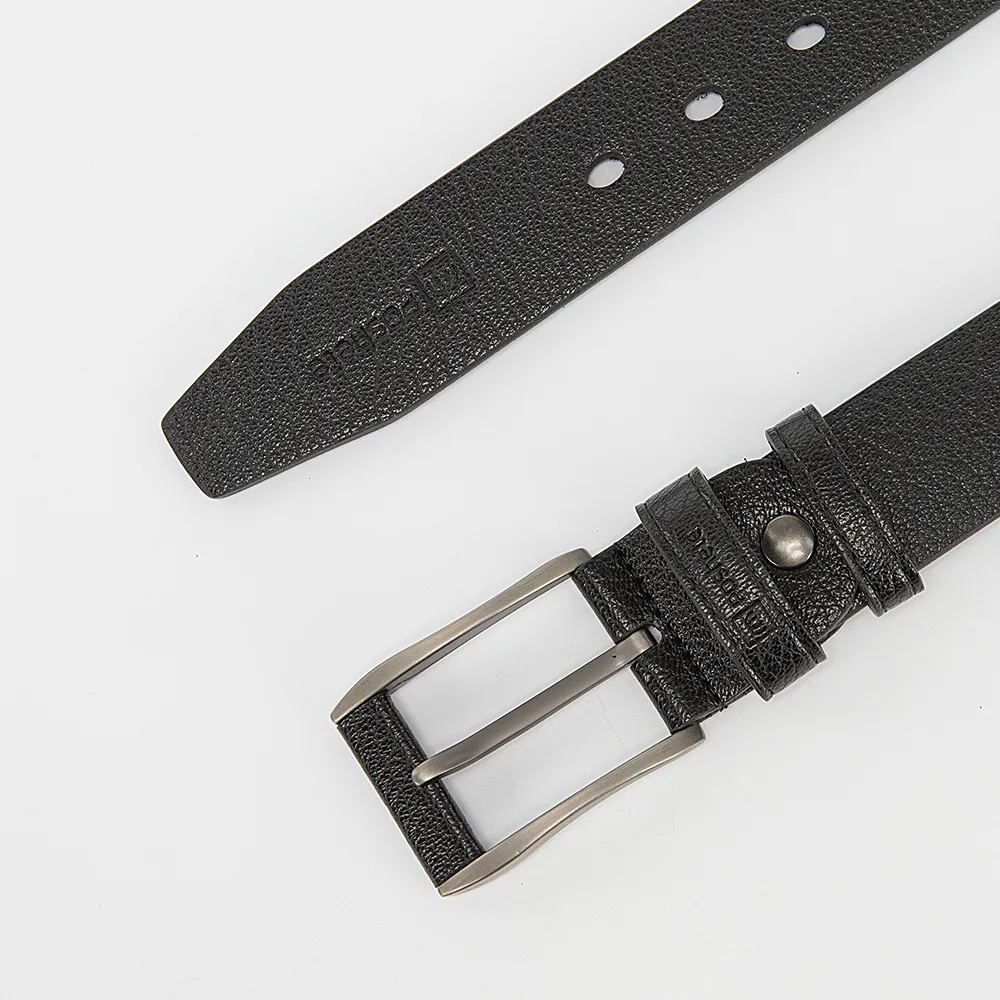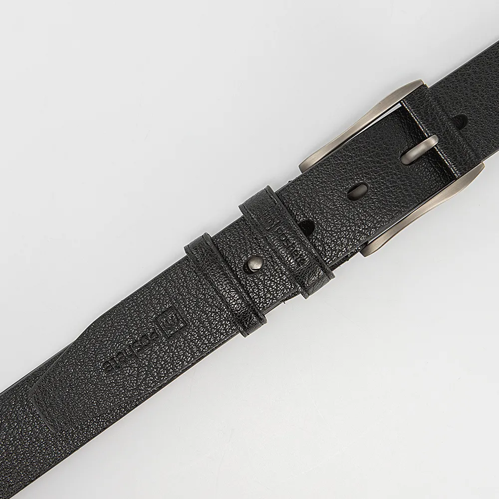 Стильный мужской ремень от бренда Poteet выполнен из натуральной мягкой кожи черного цвета. Модель дополнена открытой серебристой пряжкой и двумя кожаными шлевками. Модель длиной 111-115 см и шириной 3,8 см.