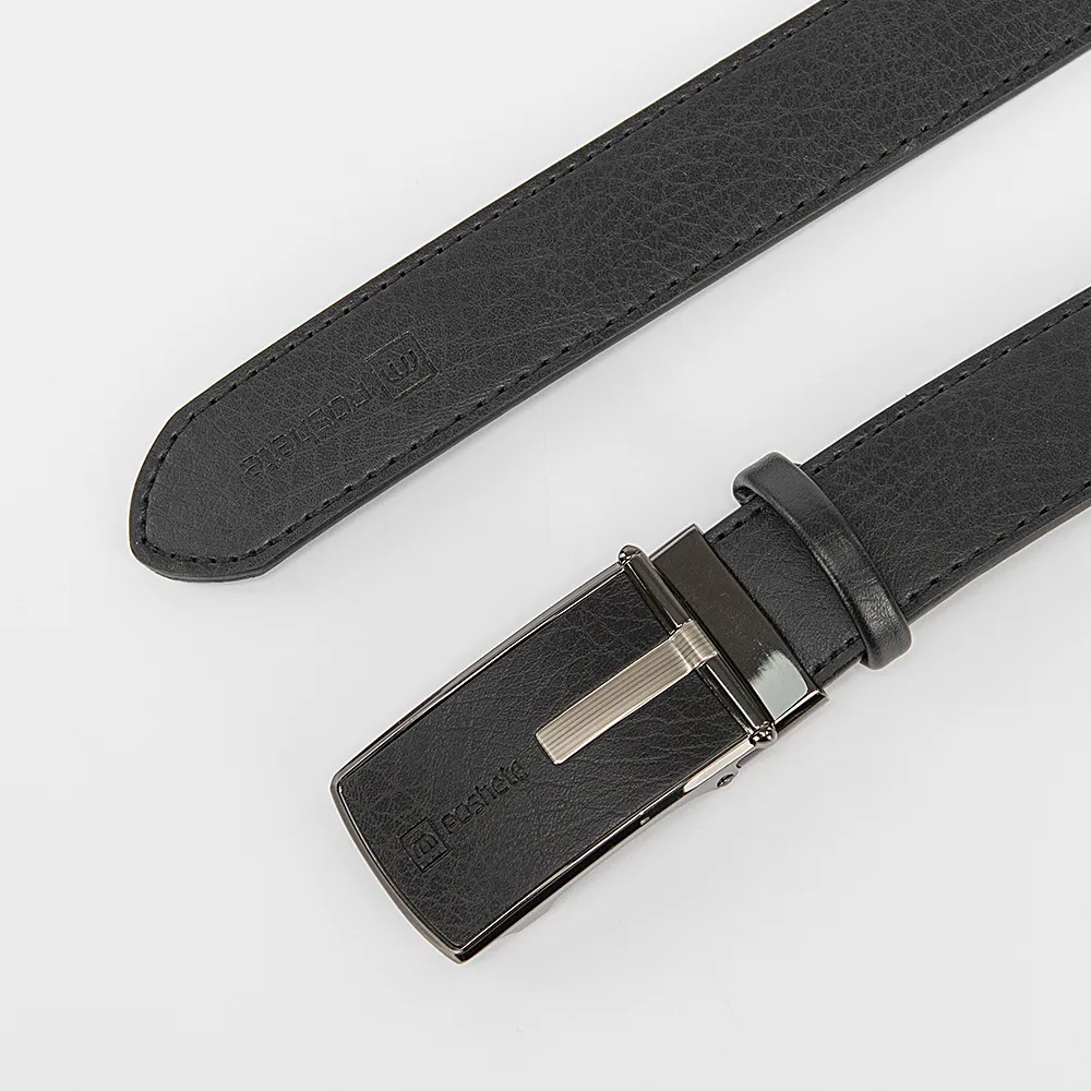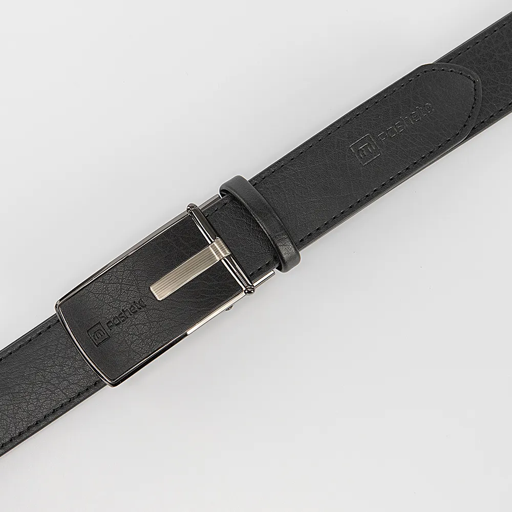 Мужской ремень от торговой марки Poshete из натуральной кожи черного цвета. Модель с пряжкой-автоматом и шлевкой; ширина - 3,5 см, длина - 116-120 см.