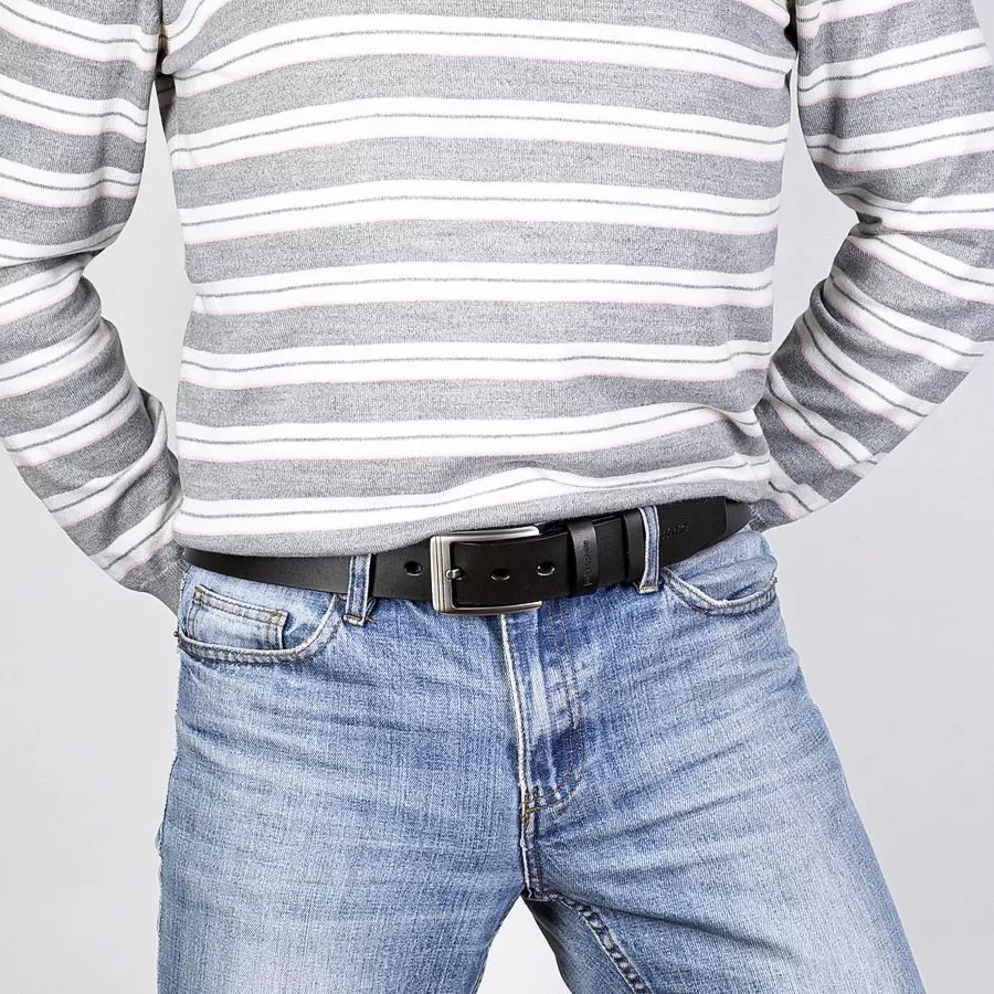 - Ремень с пряжкой подходит как для классического костюма, так и для одежды в стиле casual