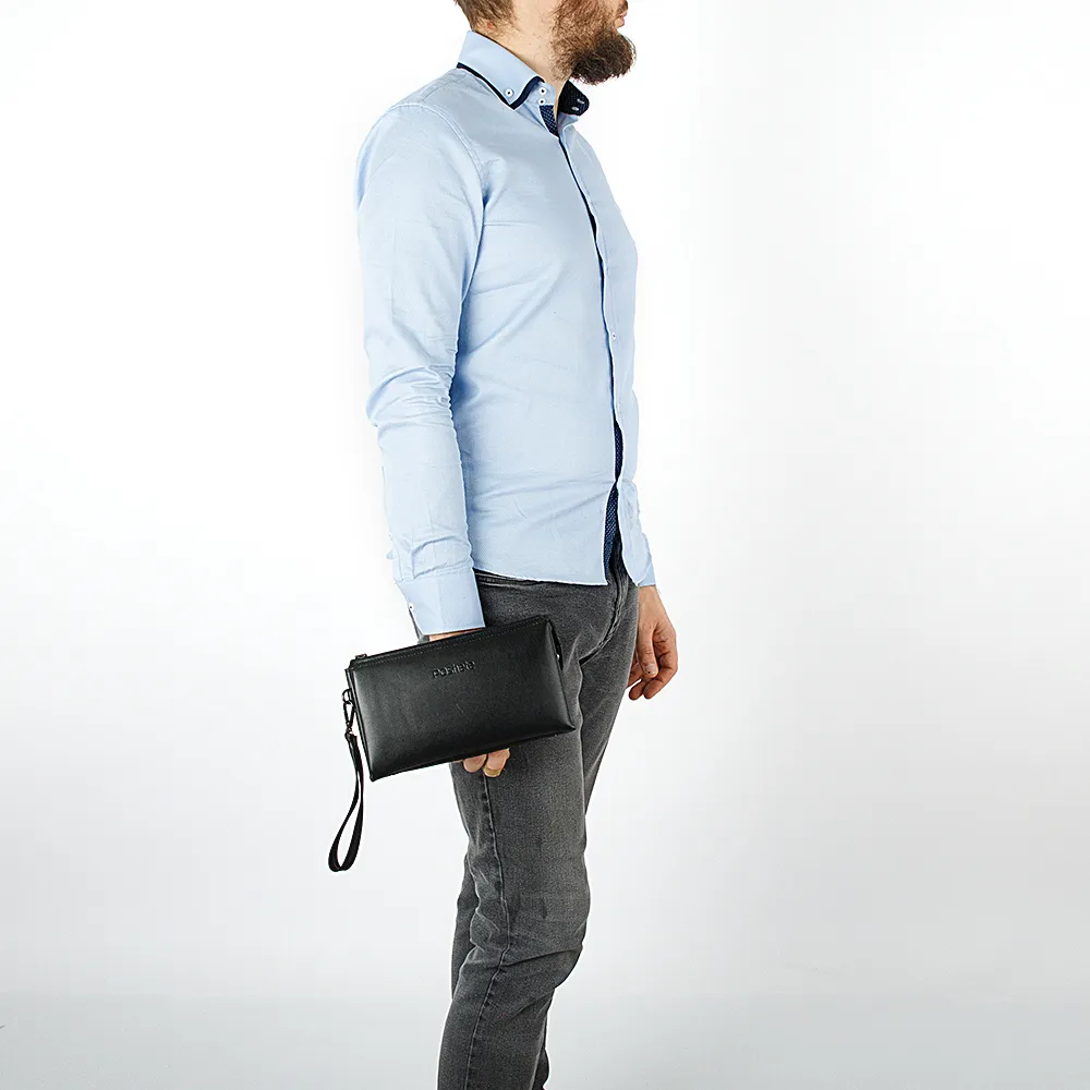 Простой и изящный клатч чёрного цвета от бренда Poshete выполнен из искусственной кожи. Застёгивается на молнию, сзади имеет плотно прилегающую ручку, комфортную для ладони. Всё самое основное, документы на авто, телефон, ключи, будет под рукой.