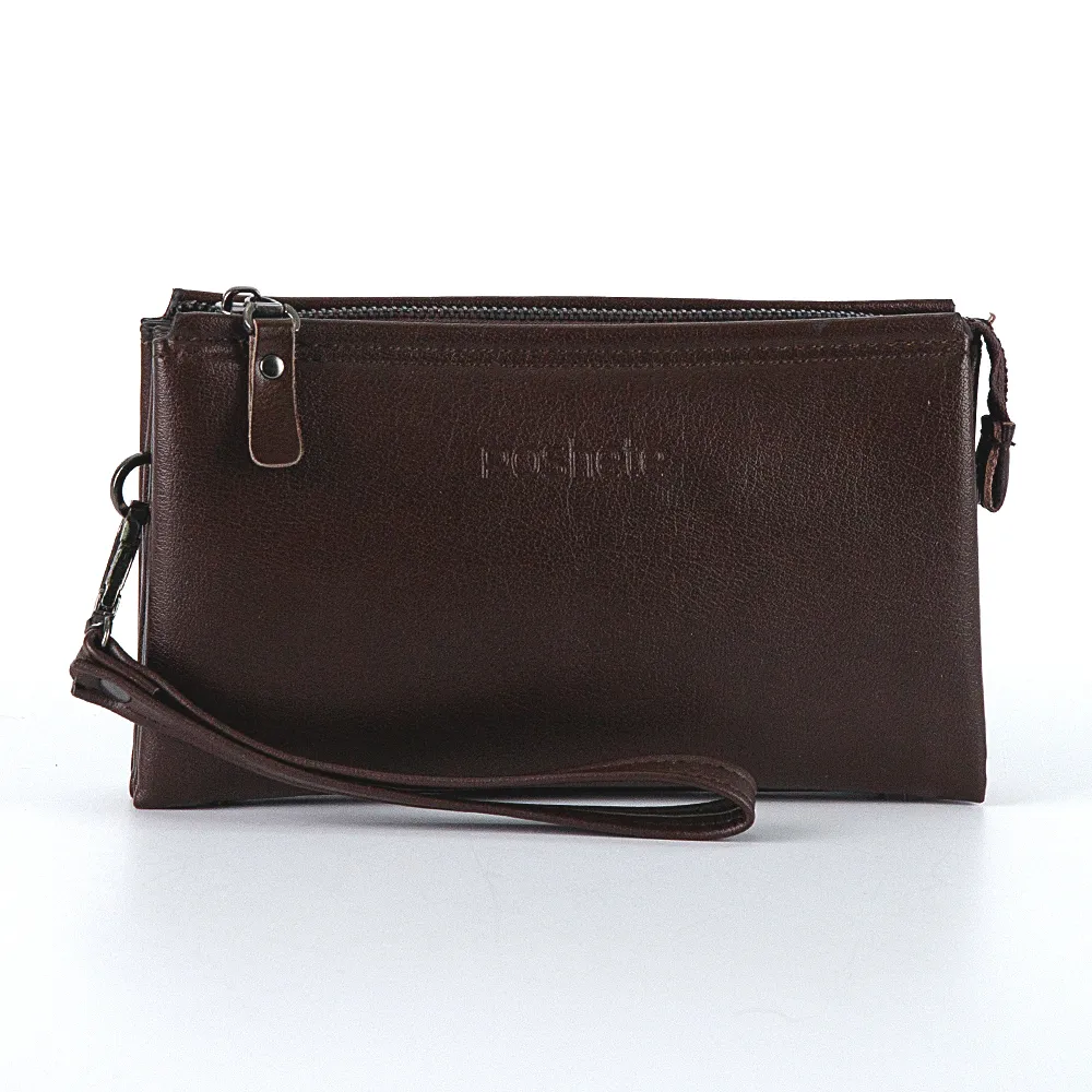 Простой и изящный клатч коричневого цвета от бренда Poshete выполнен из искусственной матовой кожи. Застёгивается на металлическую молнию, сзади имеет плотно прилегающую ручку, комфортную для ладони. Всё самое основное, документы на авто, телефон, ключи, будет под рукой.