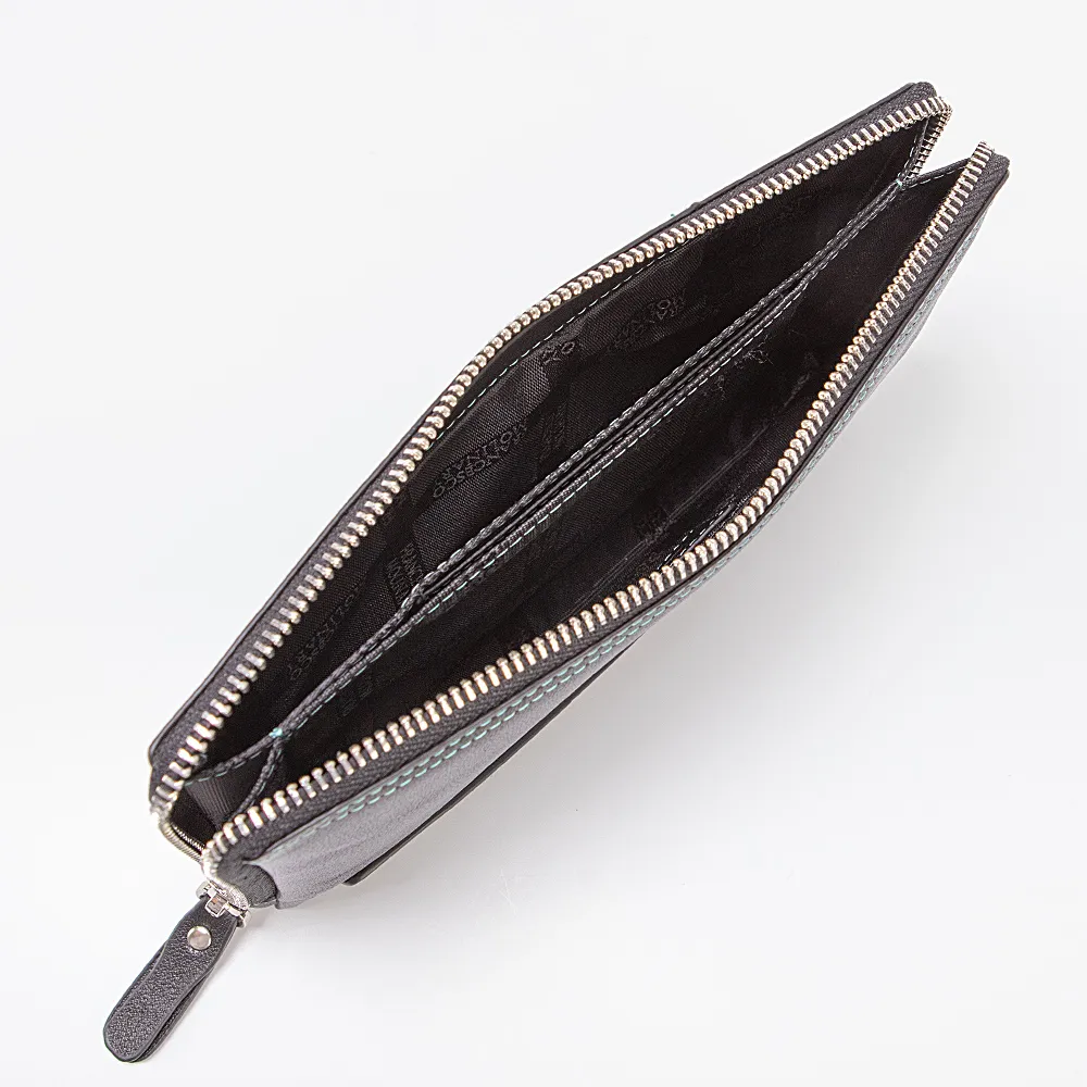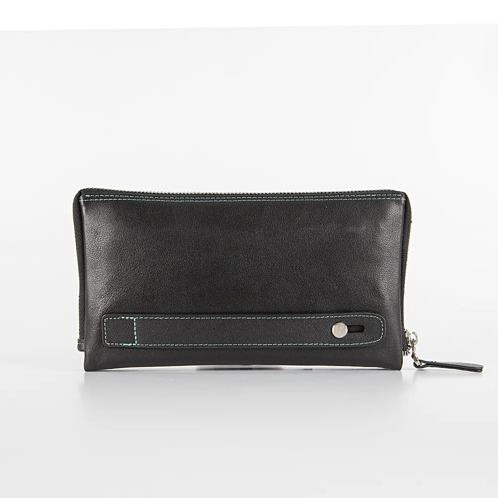 Мужской клатч от торговой марки Francesco Molinary из натуральной кожи черного цвета с яркой контрастной отстрочкой. Модель с лямкой для ношения на запястье, съемным ремешком на запястье. Отделение на молнии по трем сторонам, что обеспечивает удобный доступ. Внутри: фирменная подкладка, три отсека, карман на молнии, карманы для карт.