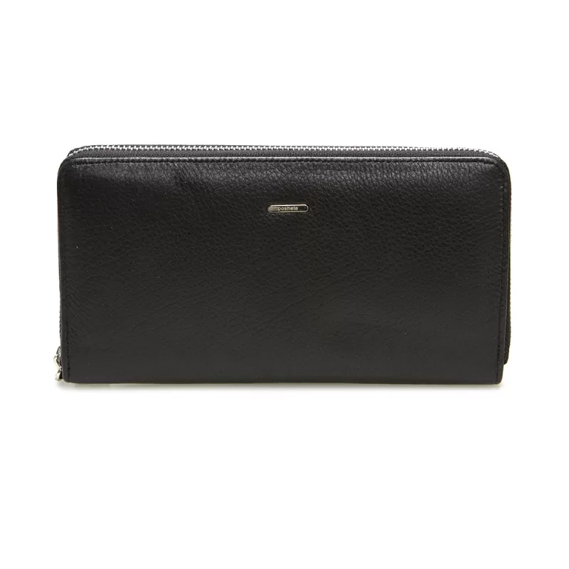 - Классический мужской клатч от бренда Poshete выполнен из натуральной мягкой кожи черного цвета и дополнен серебристой металлической фурнитурой.
