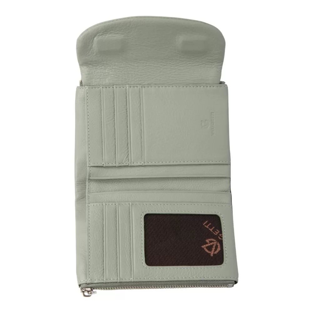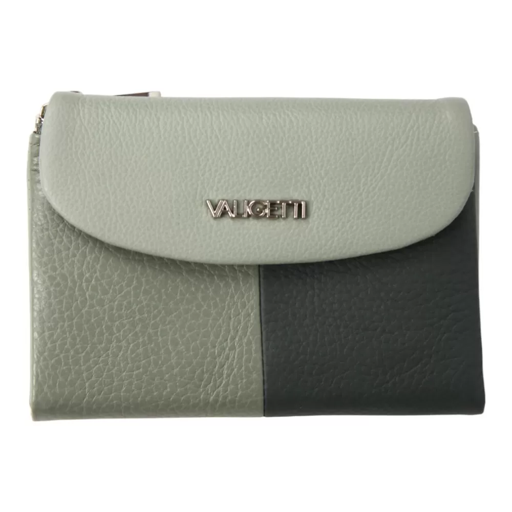 Кошелёк от бренда Valigetti изготовлен из натуральной кожи, оливково-черного цвета. Модель имеет 2 отделения : Одно имеет застежку на молнии, а второе - клапан с двумя магнитами. Внутри кошелек прошит фирменной подкладкой и большой кармашек для купюр, а так же внутри есть 6 специальных отделений для карт, кармашек для водительского удостоверения и еще один дополнительный кармашек на молнии