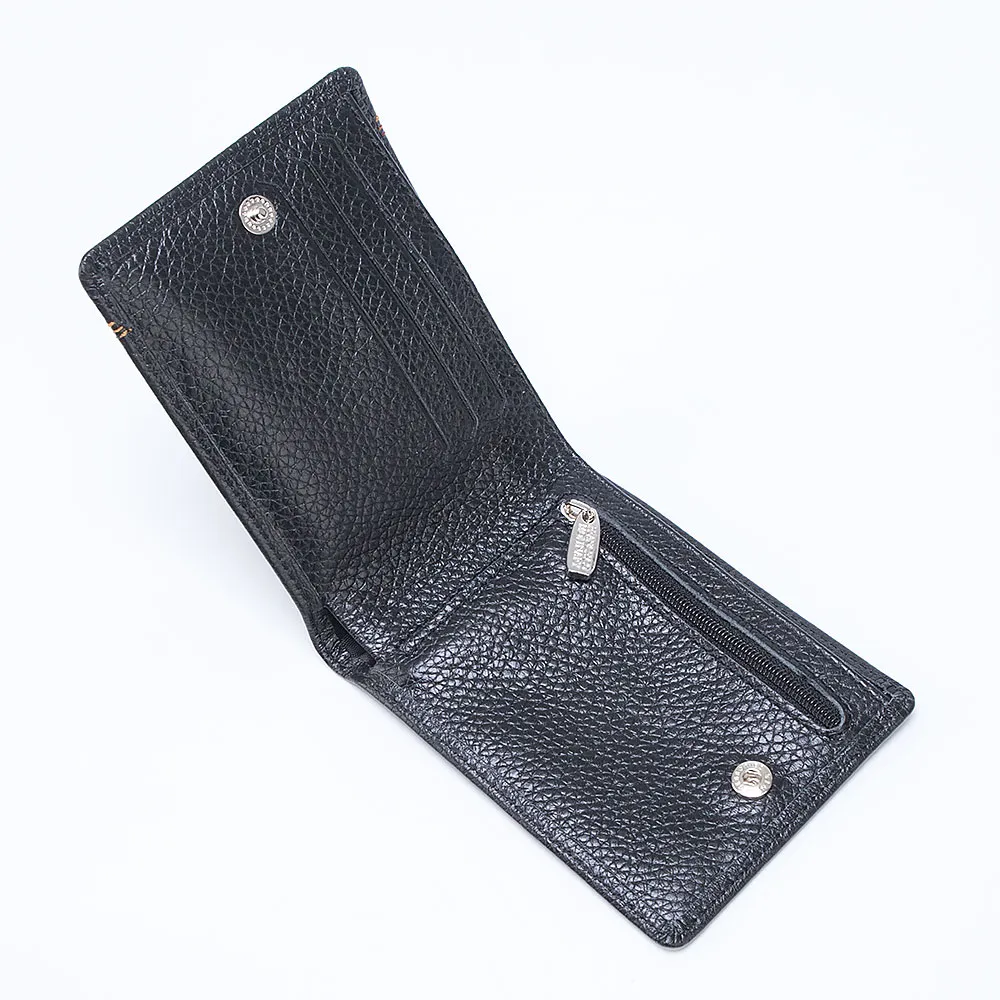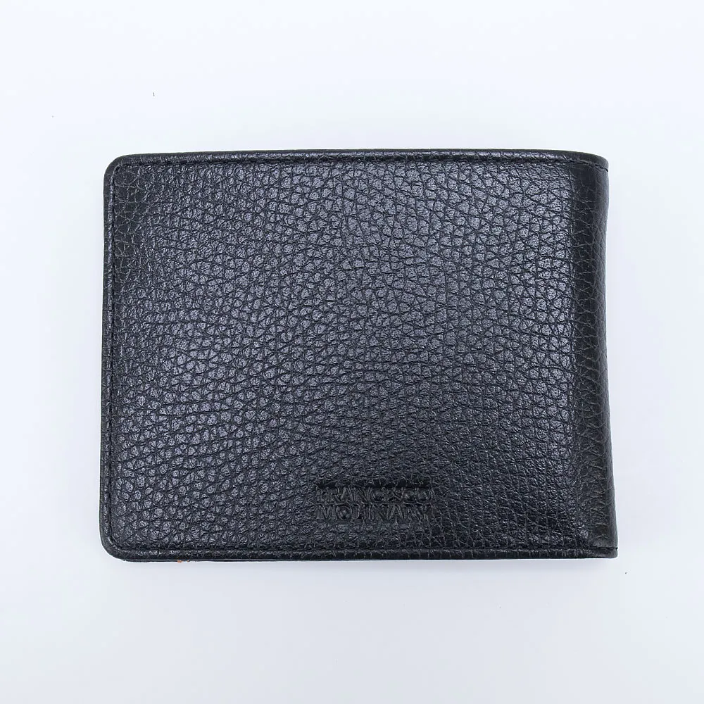 Небольшой стильный мужской кошелек от бренда Francesco Molinary выполнен из натуральной мягкой кожи классического черного цвета с декоративной отстрочкой. Аксессуар с застежкой на кнопку. Внутри два отделения для купюр, карман для монет на молнии и множество прорезей для пластиковых карт.