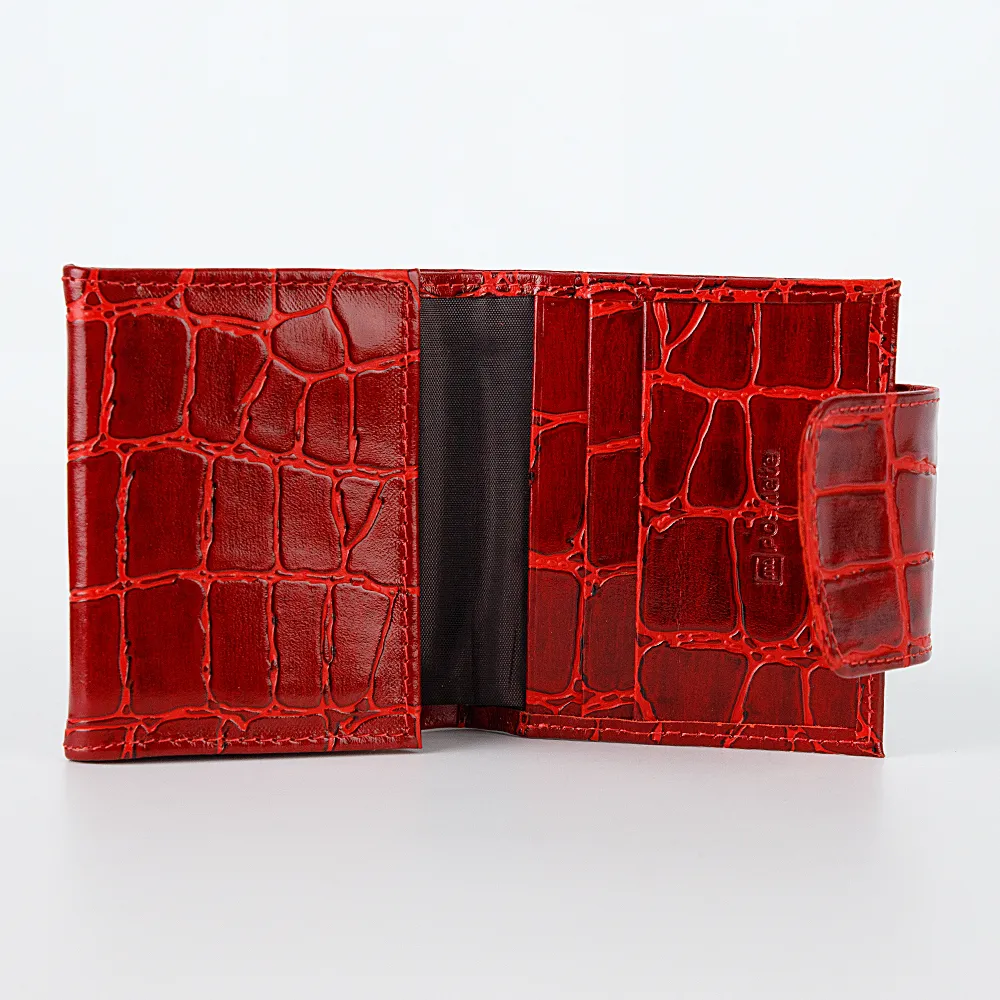 Компактный женский кошелек от торговой марки Poshete из натуральной кожи голубого цвета. Модель с двумя сложениями; закрывается клапаном на кнопке. Внутри: отделение для купюр, евромонетница с клапаном на кнопке, 3 кармана для пластиковых карт.