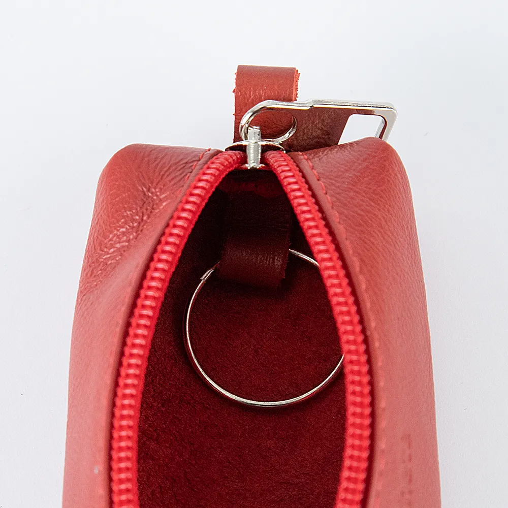 Небольшая ключница от бренда Poshete выполнена из натуральной гладкой кожи практичного коричневого цвета и дополнена серебристой металлической фурнитурой. Модель с одним основным отделением под молнией. Внутри цепочка с кольцом для ключей.
