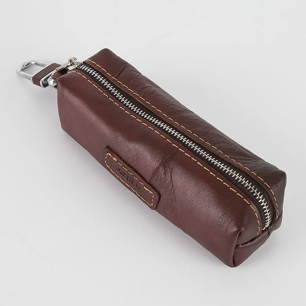 Винтажная ключница от бренда Poshete с отличным качеством отделки и металлической фурнитурой, выполнена из натуральной кожи. Ключница цвета dark camel, вытянутая и объёмная по форме. Снаружи оснащена карабином для пристёгивания, застёгивается на молнию, внутри кольцо на цепочке для ключей. Поместятся даже самые длинные.