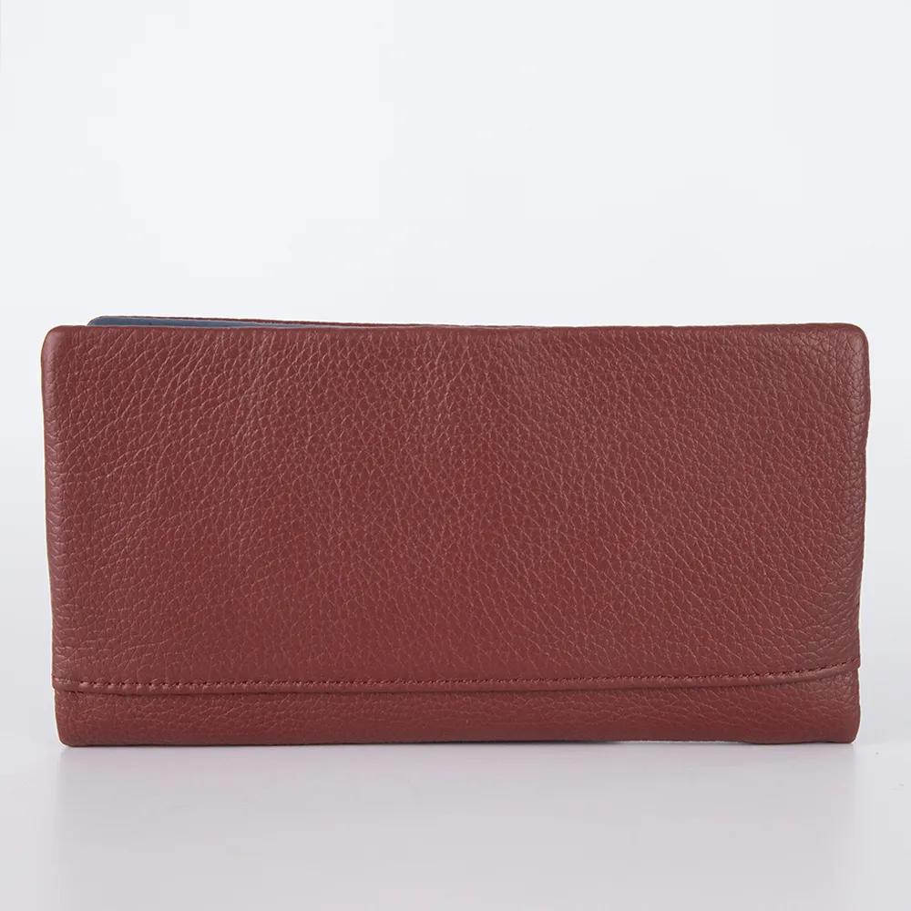 Стильный полноразмерный кошелёк от бренда Poshete выполнен из мягкой натуральной крупнозернистой кожи бордового цвета, с внутренней отделкой яркой расцветки. Модель фиксируется скрытыми магнитами, раскрывается книжкой. Внутри: два сетчатых кармана-окошка, карманы для карт, отделение для купюр, прорезной карман на молнии, большой карман на молнии для монет.