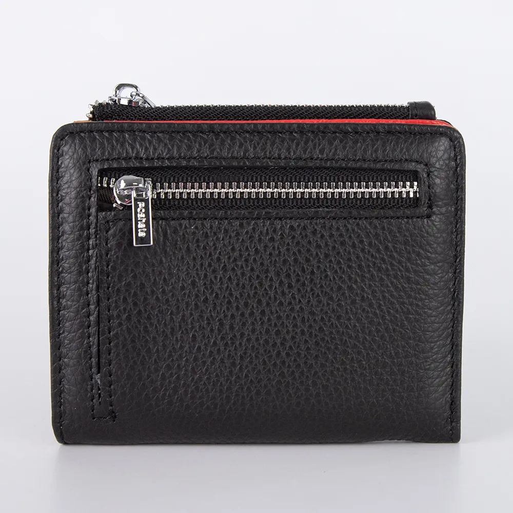Кошелёк от торговой марки Poshete выполнен из натуральной кожи черного цвета. Модель с одним сложением, фиксируется скрытыми магнитами, раскрывается книжкой. Внутри: разноцветные карманы для купюр и пластиковых карт. Снаружи: боковой карман на молнии, на задней стороне – карман на молнии.