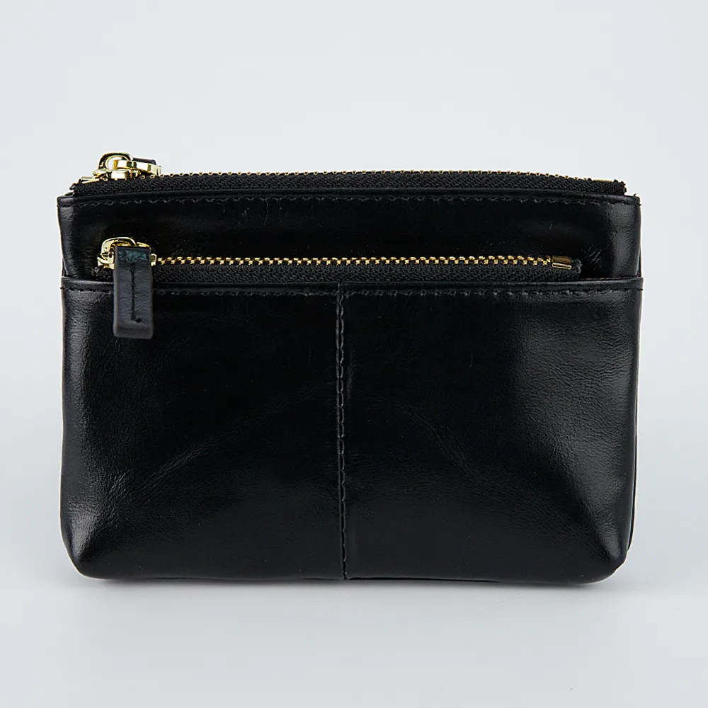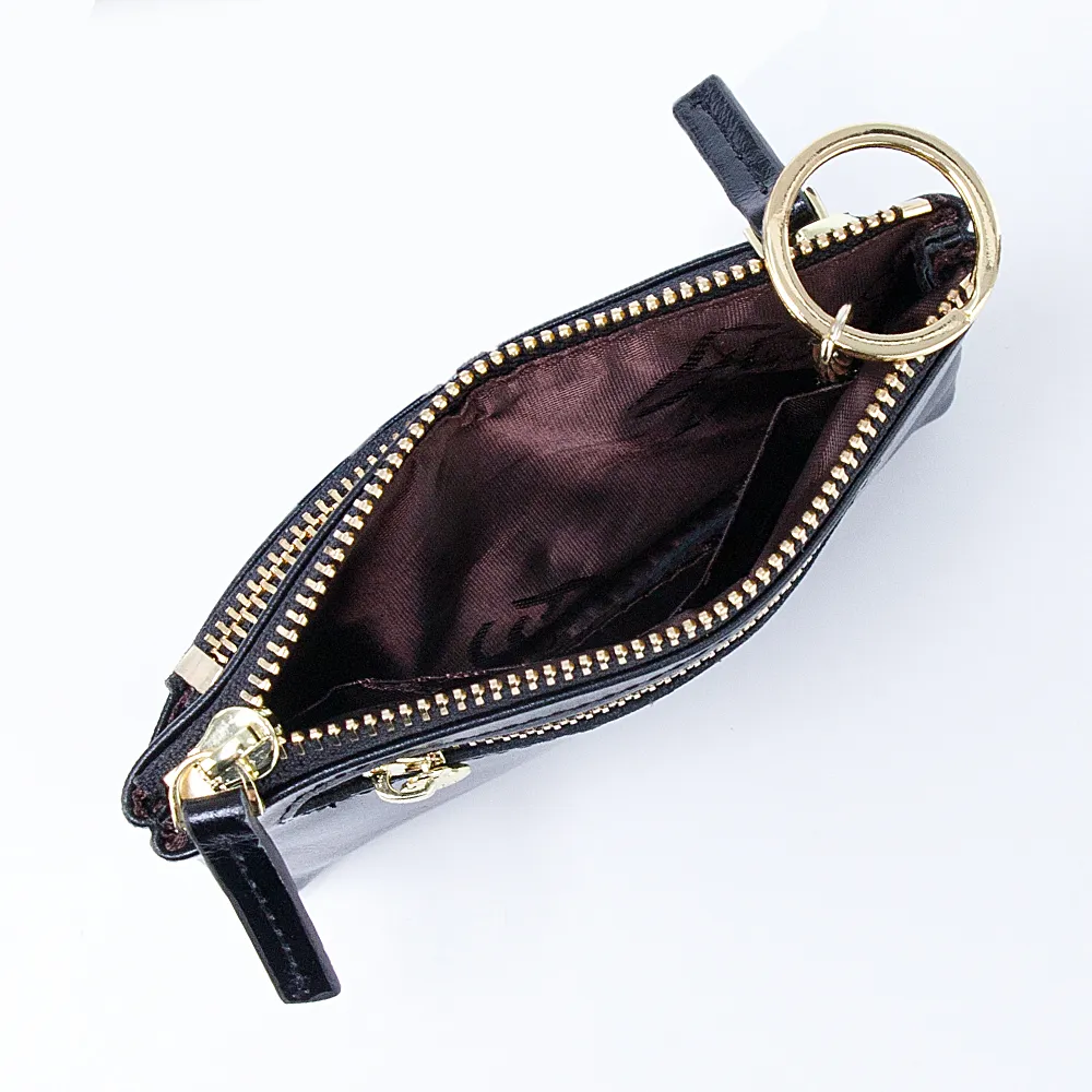 Компактный стильный кошелёк-ключница от торговой марки Francesco Molinary выполнен из натуральной кожи черного цвета с золотистой фурнитурой. Эффект помятости придает аксессуару винтажности. Модель на молнии, на передней и задней сторонах – карман на молнии. Внутри – текстильная подкладка, накладной карман и кольцо для крепления ключей на цепочке. Модель декорирована оригинальными пуллерами и тиснением с названием и эмблемой бренда.