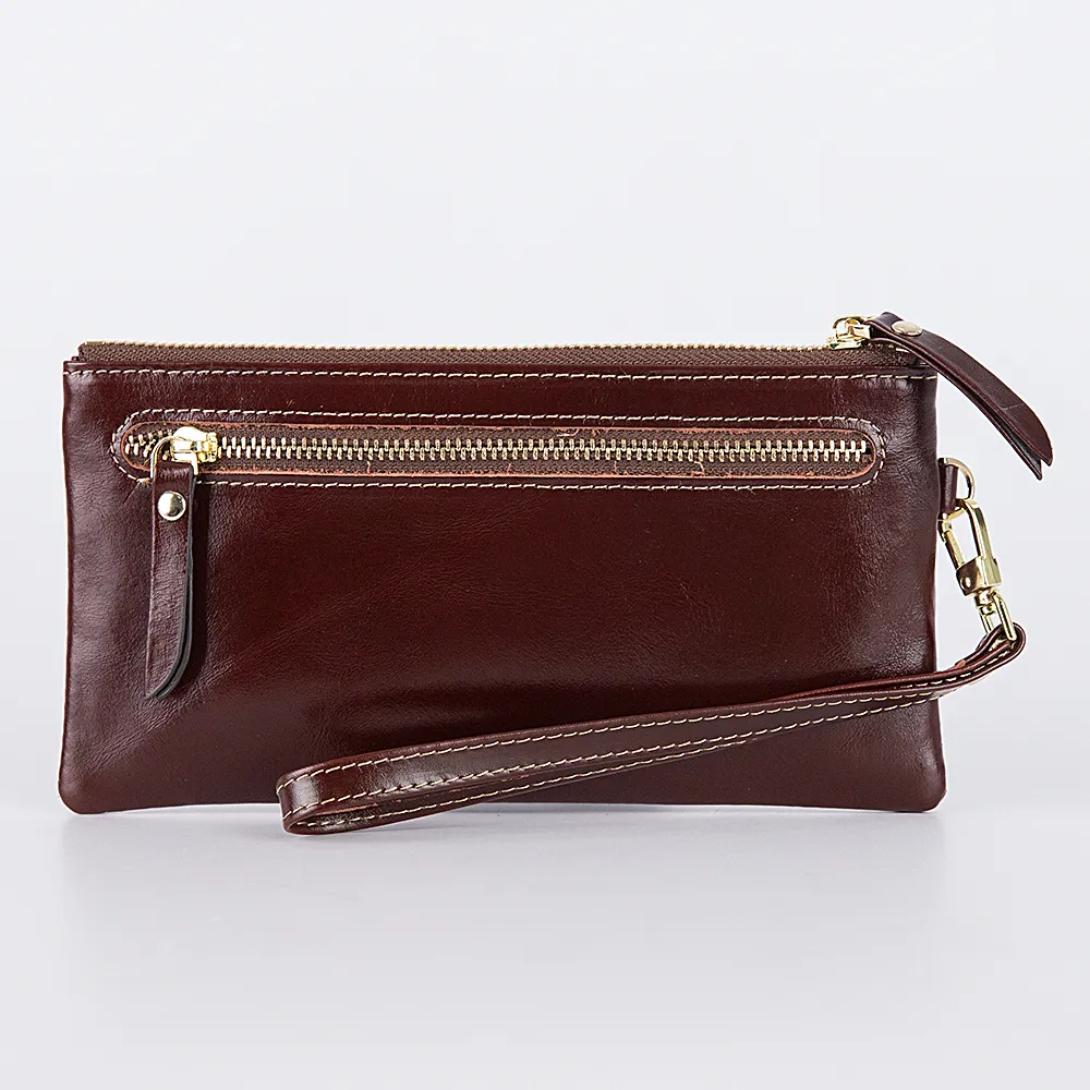 Кошелёк-клатч из коллекции в ретро стиле от бренда Francesco Molinary выполнен из натуральной кожи в сочетании с золотистой металлической фурнитурой и несомненно украсит вашу сумочку. Модель коричневого цвета со стилизацией помятости и лоска. Застёгивается на молнию, внутри шоколадного цвета подкладка и накладной карман. Снаружи дополнен ремешком для запястья и карманом на кнопке.