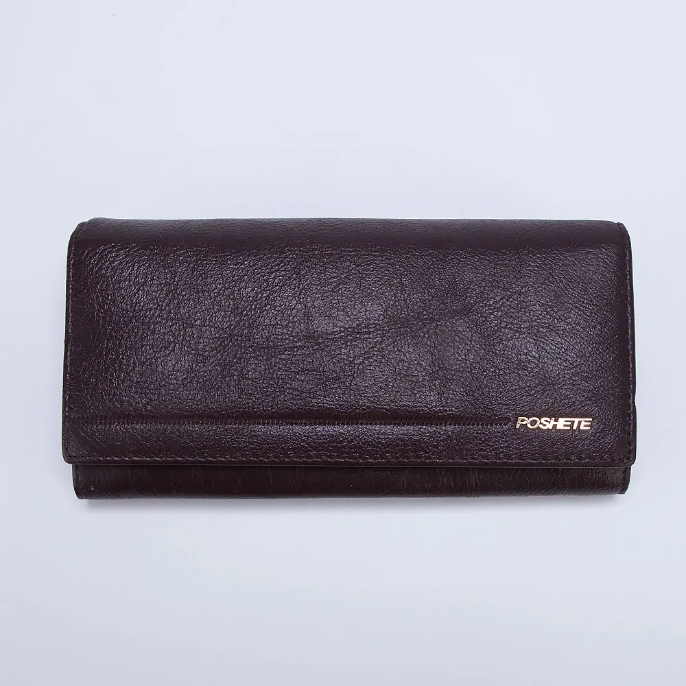 Классический женский кошелёк от Poshete выполнен в коричневом цвете из натуральной кожи с текстильной подкладкой. Кошелёк большой, купюры не придётся складывать. Закрывается клапаном на скрытые магниты. Внутри четыре отделения для купюр, три кармана на молнии, кармашки для пластиковых карт, на внешней стороне карман на молнии.