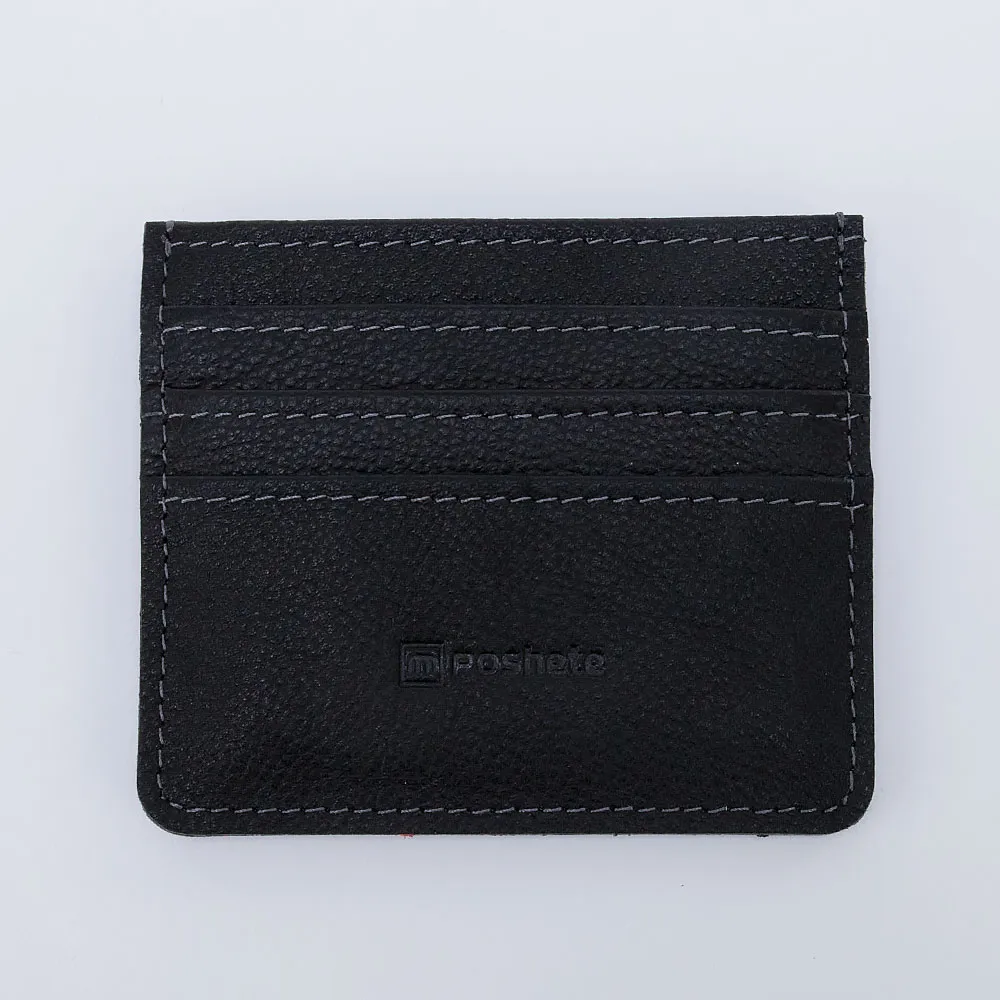 Кредитница от торговой марки Poshete из натуральной кожи черного цвета. Плоская практичная модель. По обеим сторонам по три кармана для карт.