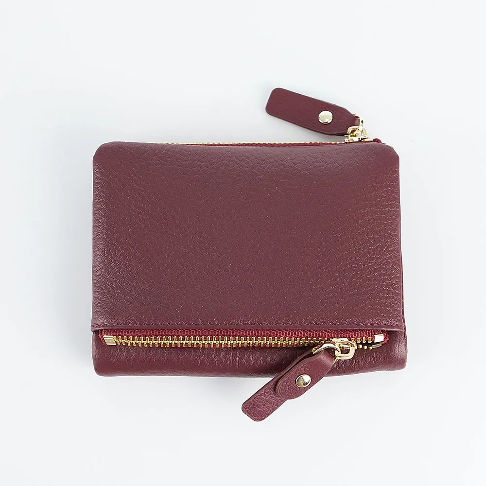 Кошелек от торговой марки Francesco Molinary из натуральной кожи бордового цвета. Модель с одним сложением; раскрывается книжкой, фиксируется кнопкой. Внутри: отделение для купюр, карманы для карт, карман-окошко. Снаружи имеется два кармана на молнии.