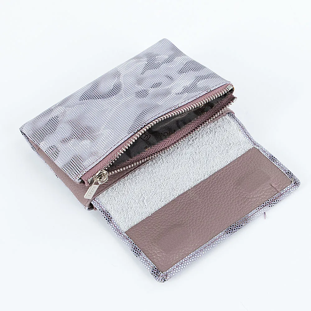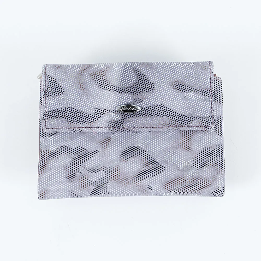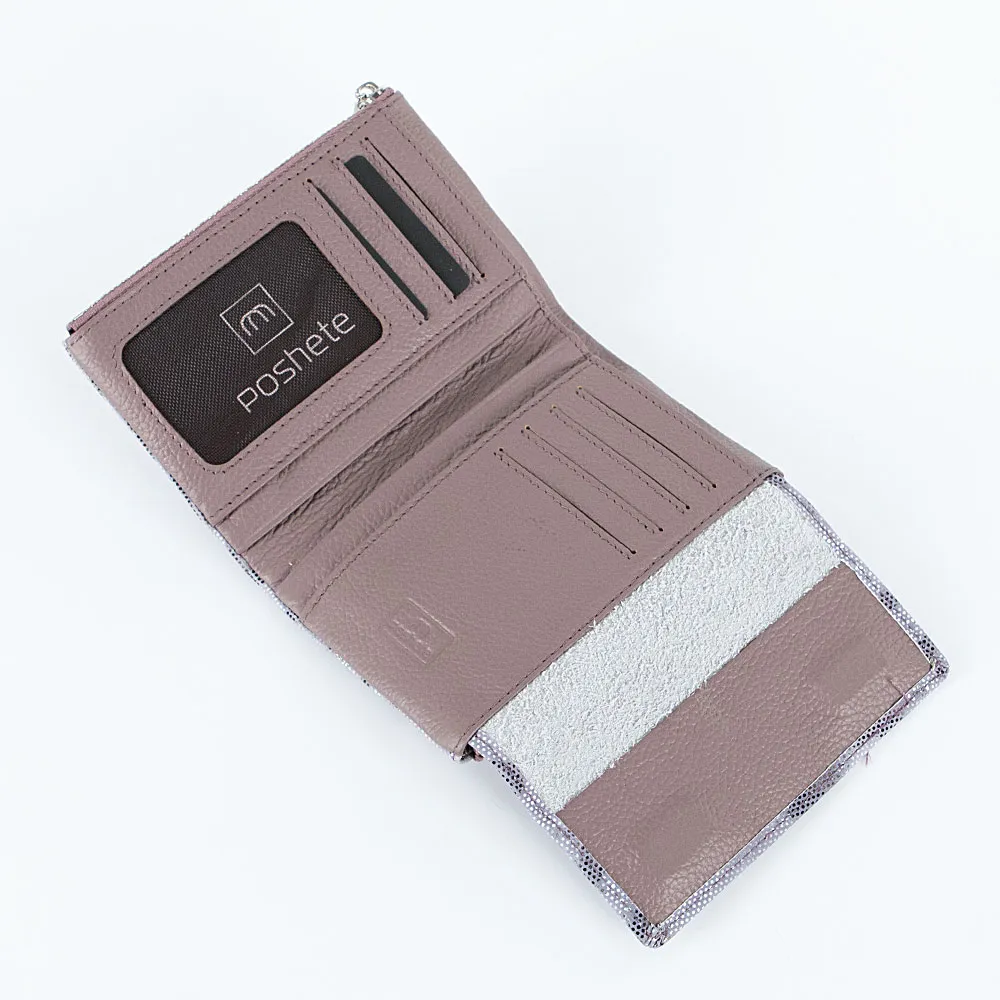 Кошелек от торговой марки Poshete из натуральной кожи с лазерной обработкой и оригинальным тиснением. Модель среднего размера, имеет два сложения; закрывается клапаном на скрытых магнитах. Внутри: карманы для карт, карман-окошко, отделение для купюр, карман на молнии. Снаружи имеется карман на молнии.