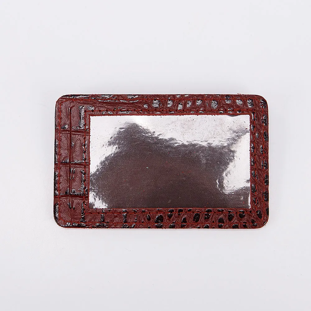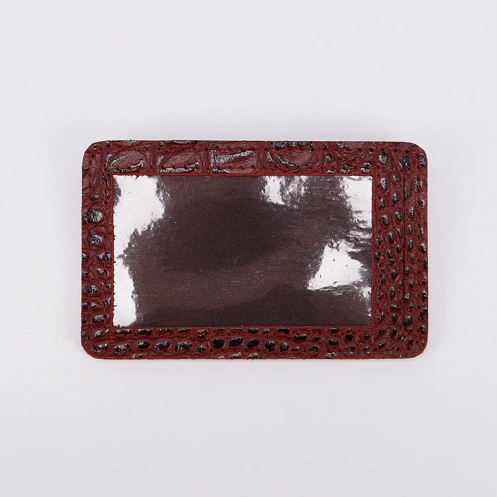 Картхолдер от торговой марки Poshete из натуральной кожи бордового цвета с тиснением под крокодиловую кожу. Модель с прозрачным окошком с обеих сторон.