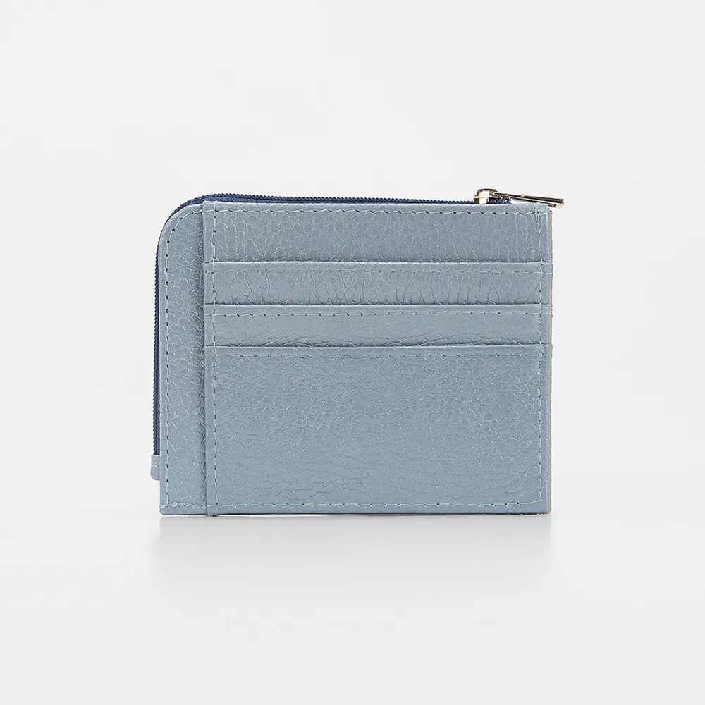 Кредитница от торговой марки Poshete из натуральной кожи голубого цвета. Модель с отделением на молнии и карманами для карт по обеим сторонам.