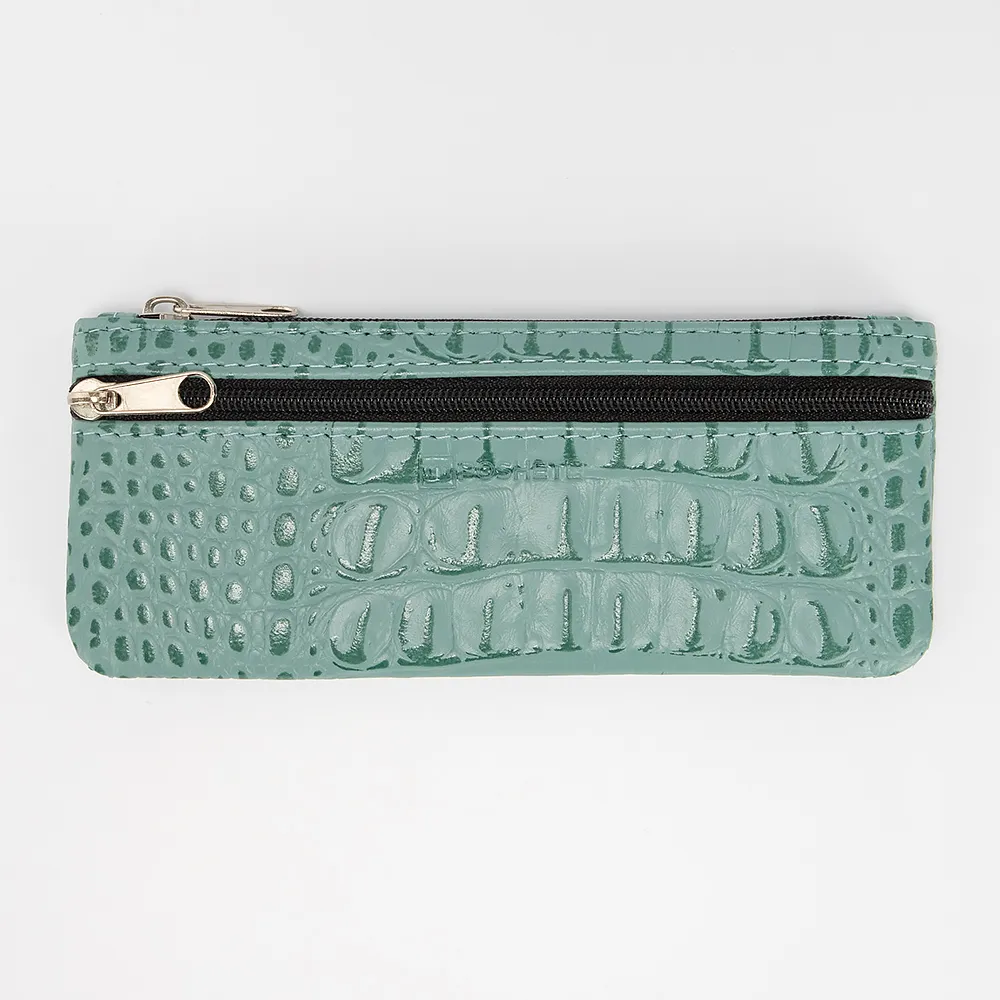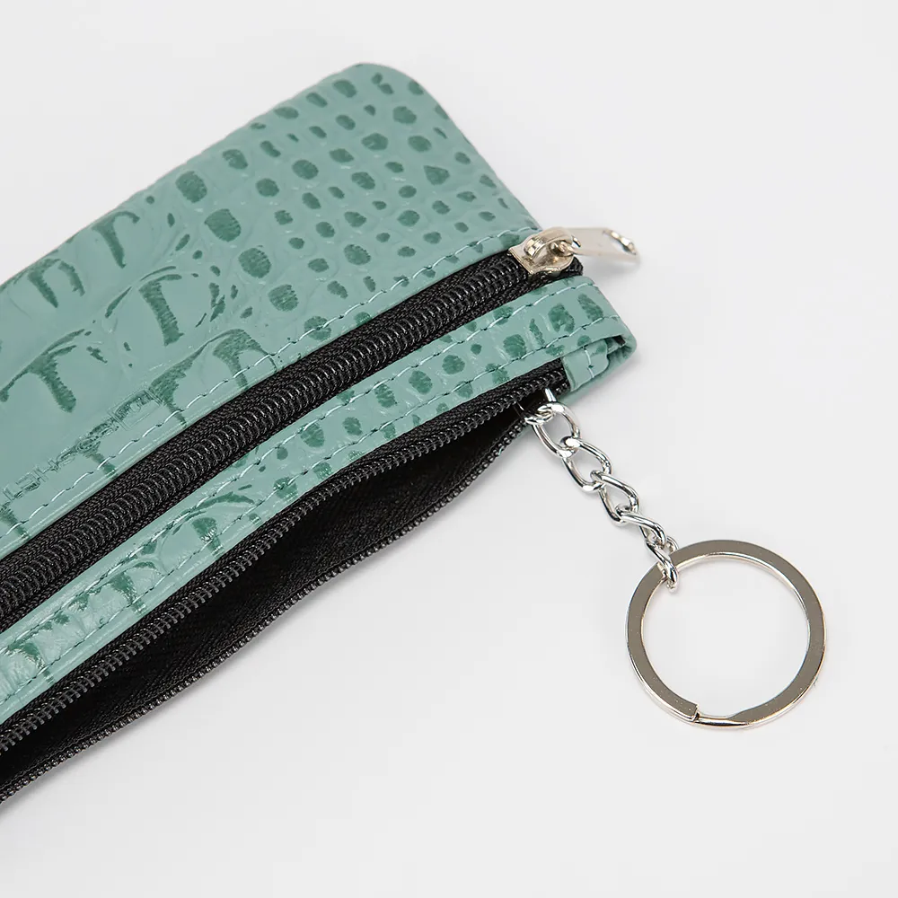 Ключница от торговой марки Poshete выполнена из натуральной кожи мятного цвета с тиснением под крокодила. Отделение на молнии. Внутри: кольцо для крепления. Снаружи имеется карман на молнии.