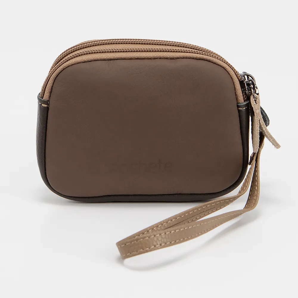 Миниатюрный кошелек от торговой марки Poshete выполнен из натуральной кожи бежевого цвета. Два отделения на молнии.