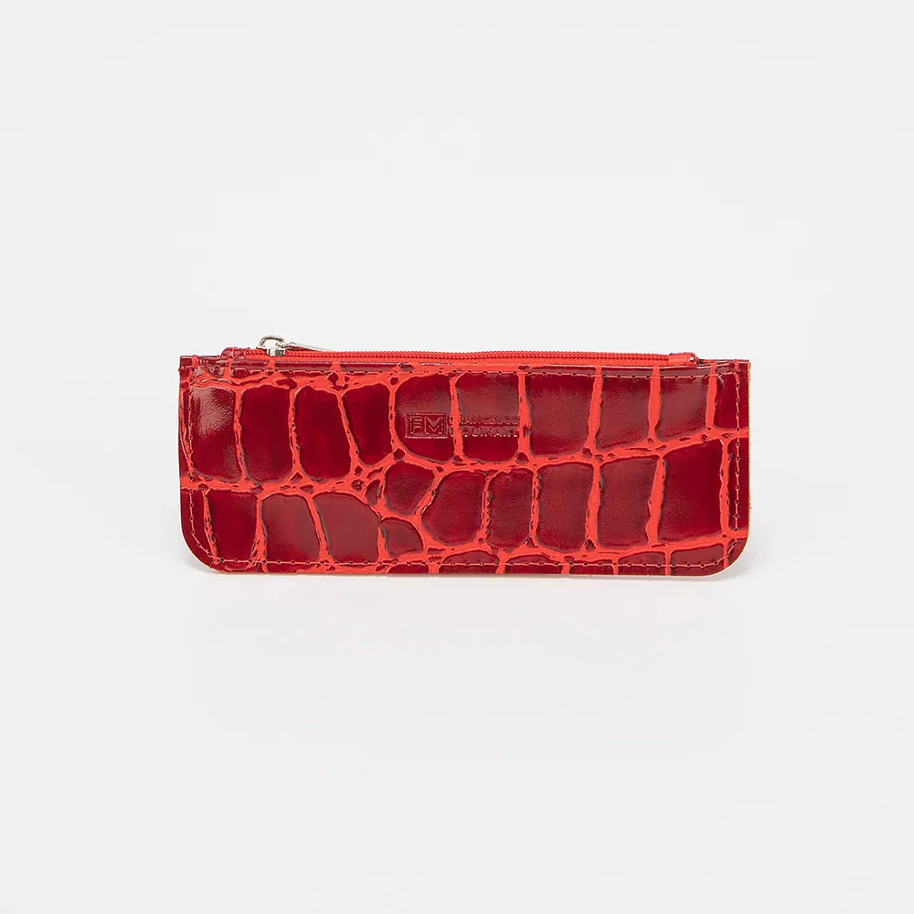 Стильная ключница Francesco Molinary из натуральной кожи красного цвета с тиснением под кожу рептилии. Внутри одно основное отделение с цепочкой под ключи. Модель с застежкой на молнию.