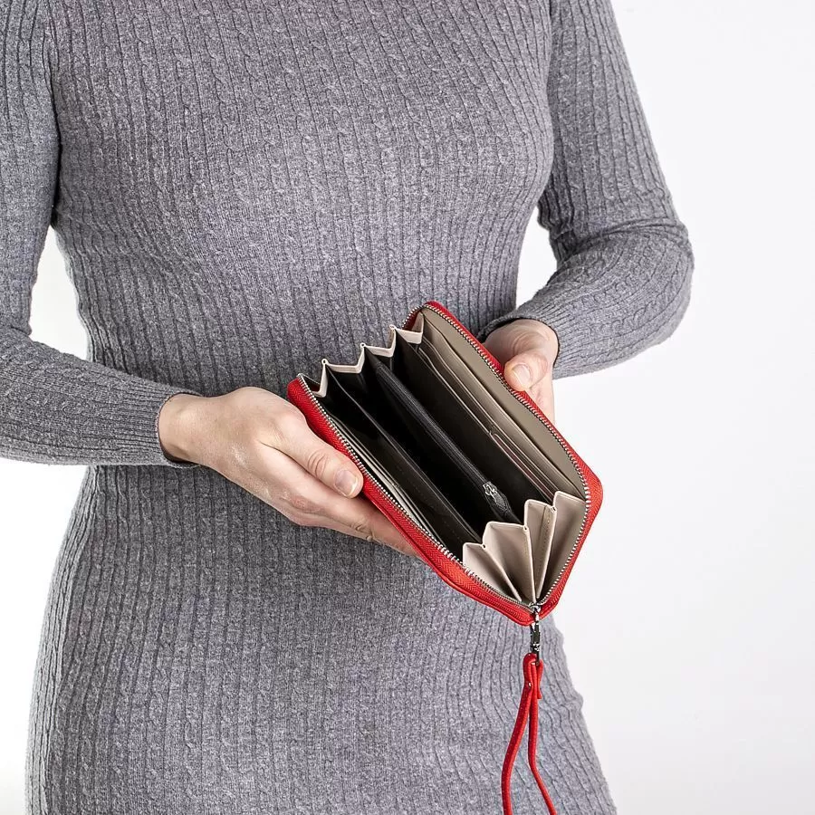 - Внутри отделение для купюр, карман для монет на молнии, отделения для пластиковых карт.