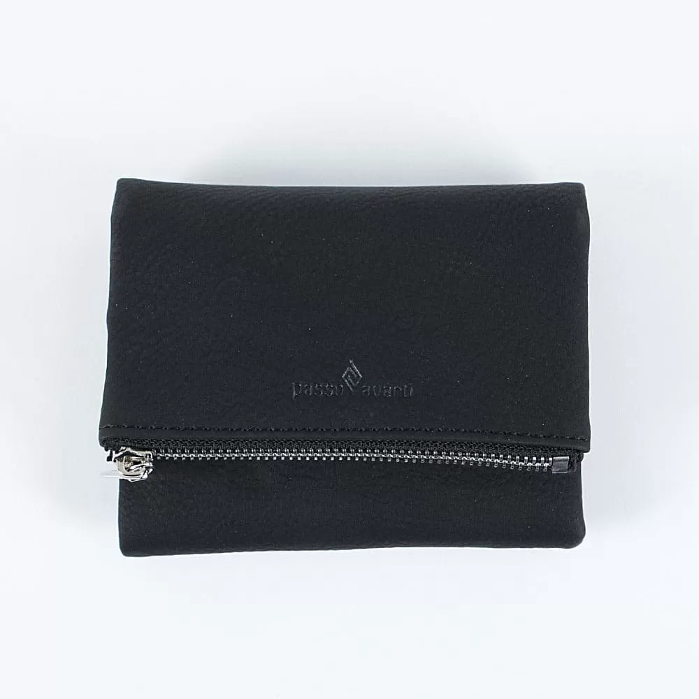 Кошелек Passo Avanti, выполненный из искусственной кожи, представлен в черном цвете.