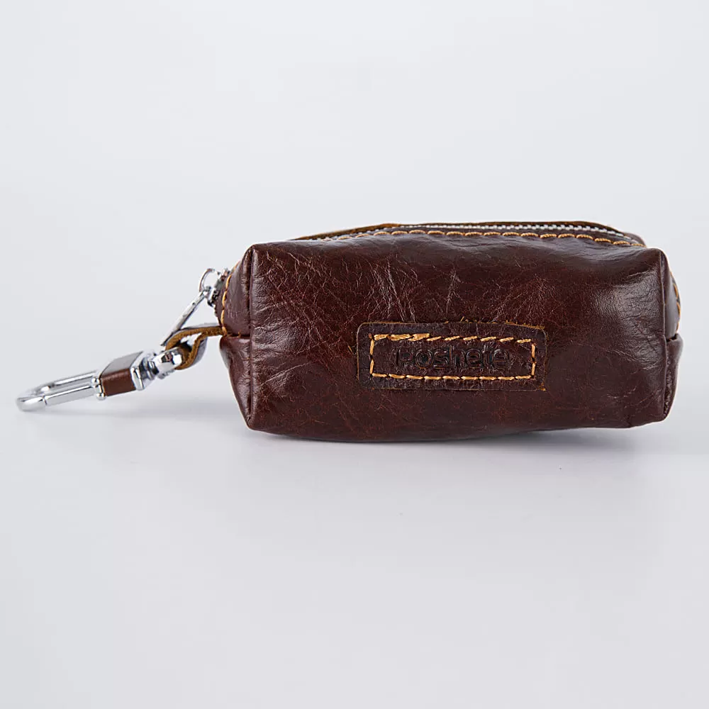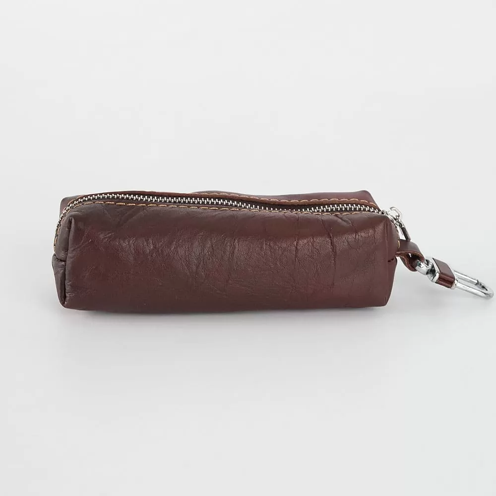 Компактная ключница из натуральной кожи от бренда Poshete с металлической фурнитурой представлена в коричневом цвете. Это очень удобная модель, в которой вы сможете разместить все свои ключи, тем самым сохранив подкладку вашей сумки на долгие годы.