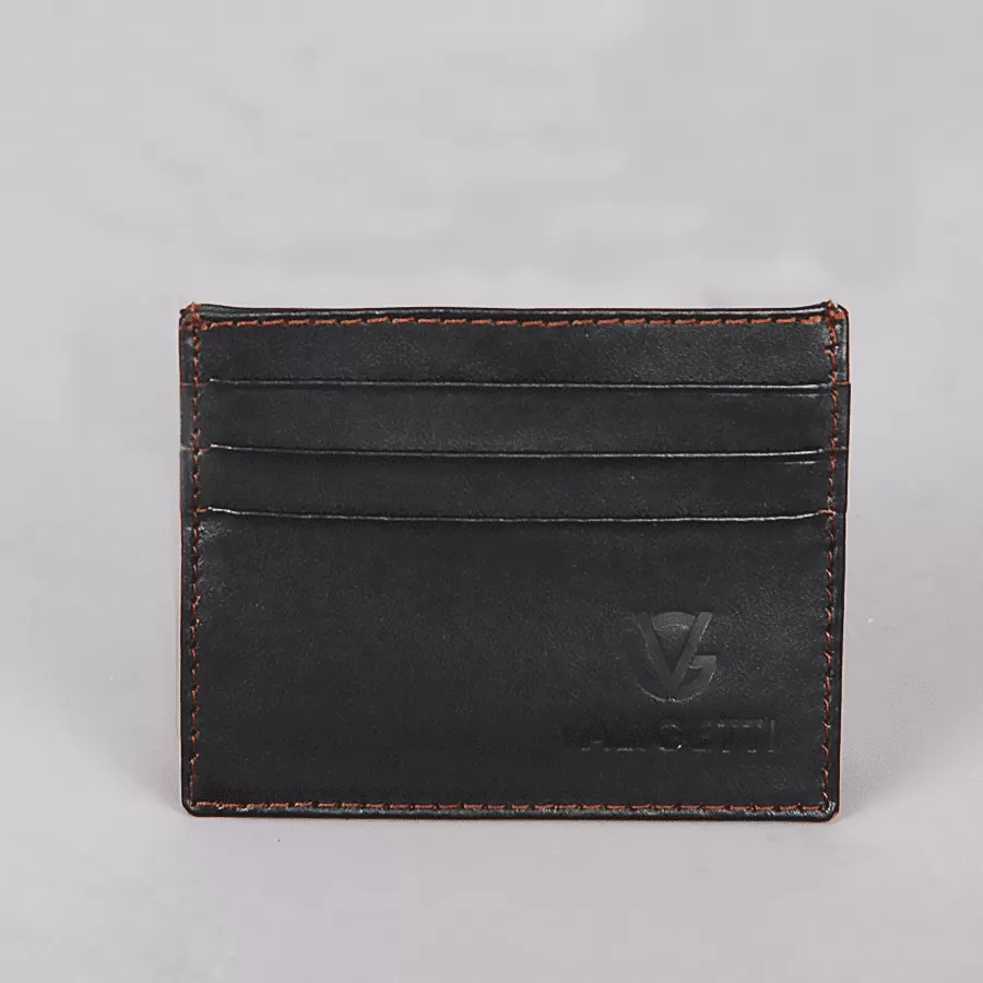 Компактная визитница бренда Valigetti, изготовленная из натуральной кожи, черного цвета и имеет семь отделений для пластиковых карт.