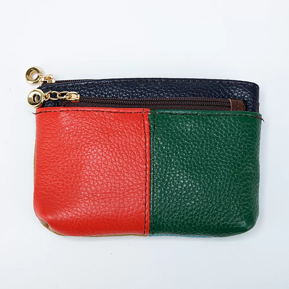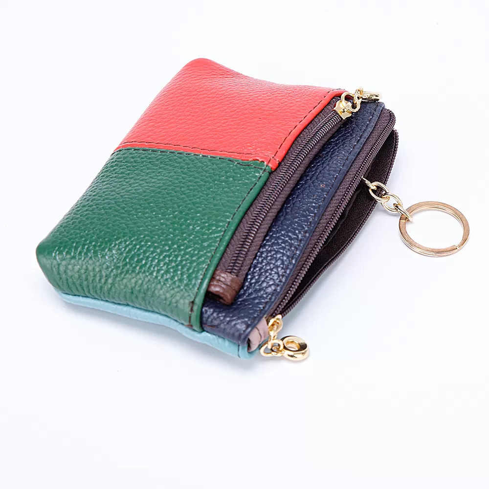 Компактный и функциональный, этот аксессуар имеет отделение для ключей на молнии и металлическое кольцо на цепочке. На передней и задней сторонах расположены карманы на молнии.