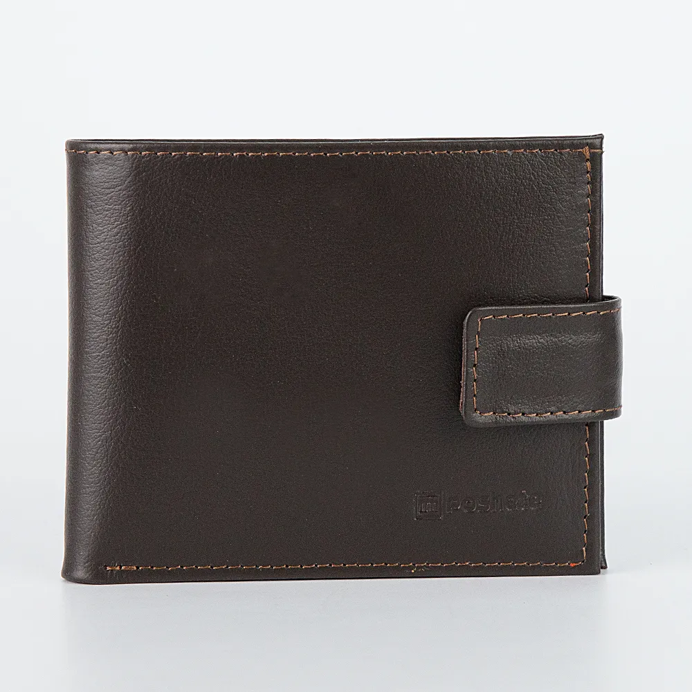 Мужской кошелек от бренда Poshete выполнен в коричневом цвете и дополнен тиснением логотипа бренда. Модель из натуральной мягкой кожи, с двумя отделениями для купюр, несколькими прорезями для пластиковых карт и небольшим карманом для монет на кнопке.