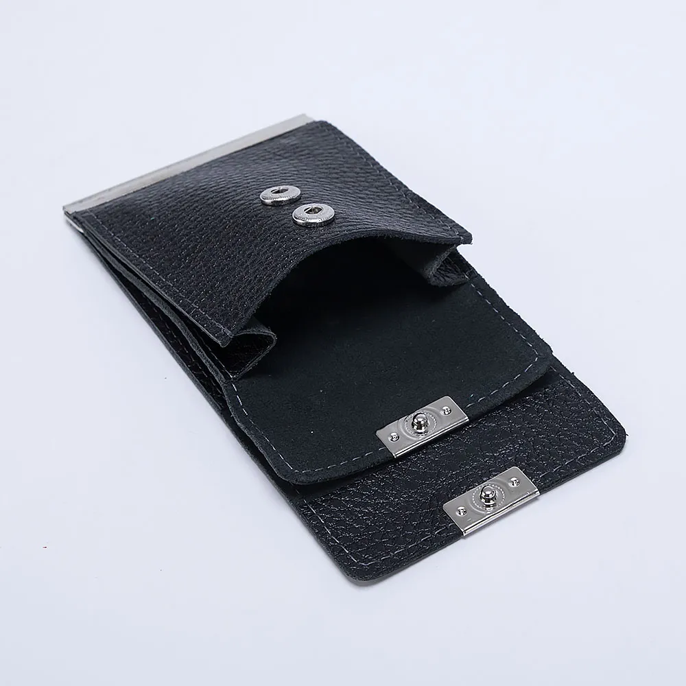 Классический зажим для денег от Poshete выполнен в черном цвете из натурально кожи с естественной фактурой и дополнен серебристой металлической фурнитурой.