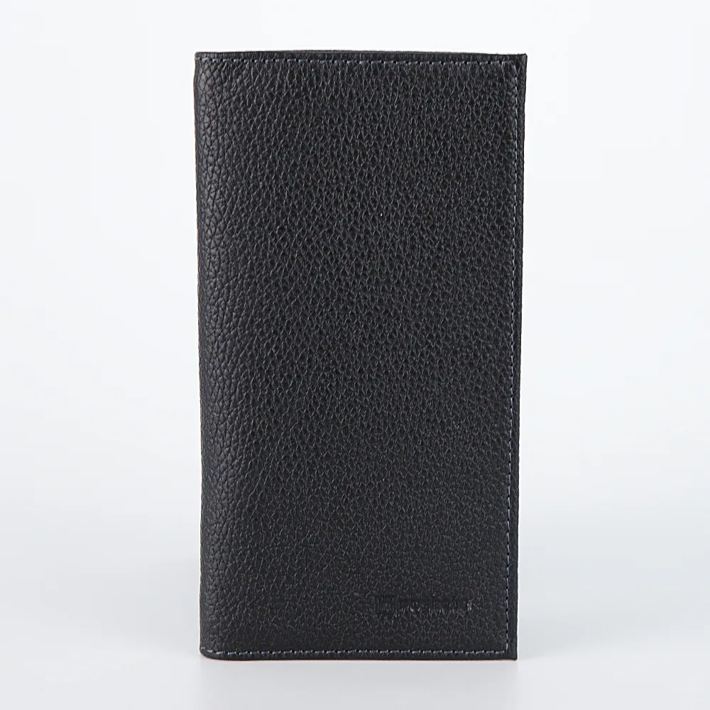 Элегантный мужской кошелёк от бренда Poshete выполнен в чёрном цвете из натуральной кожи. Модель без застёжки, раскрывается книжкой, внутри отделение для купюр, шестнадцать кармашков для пластиковых карт и карман на молнии.