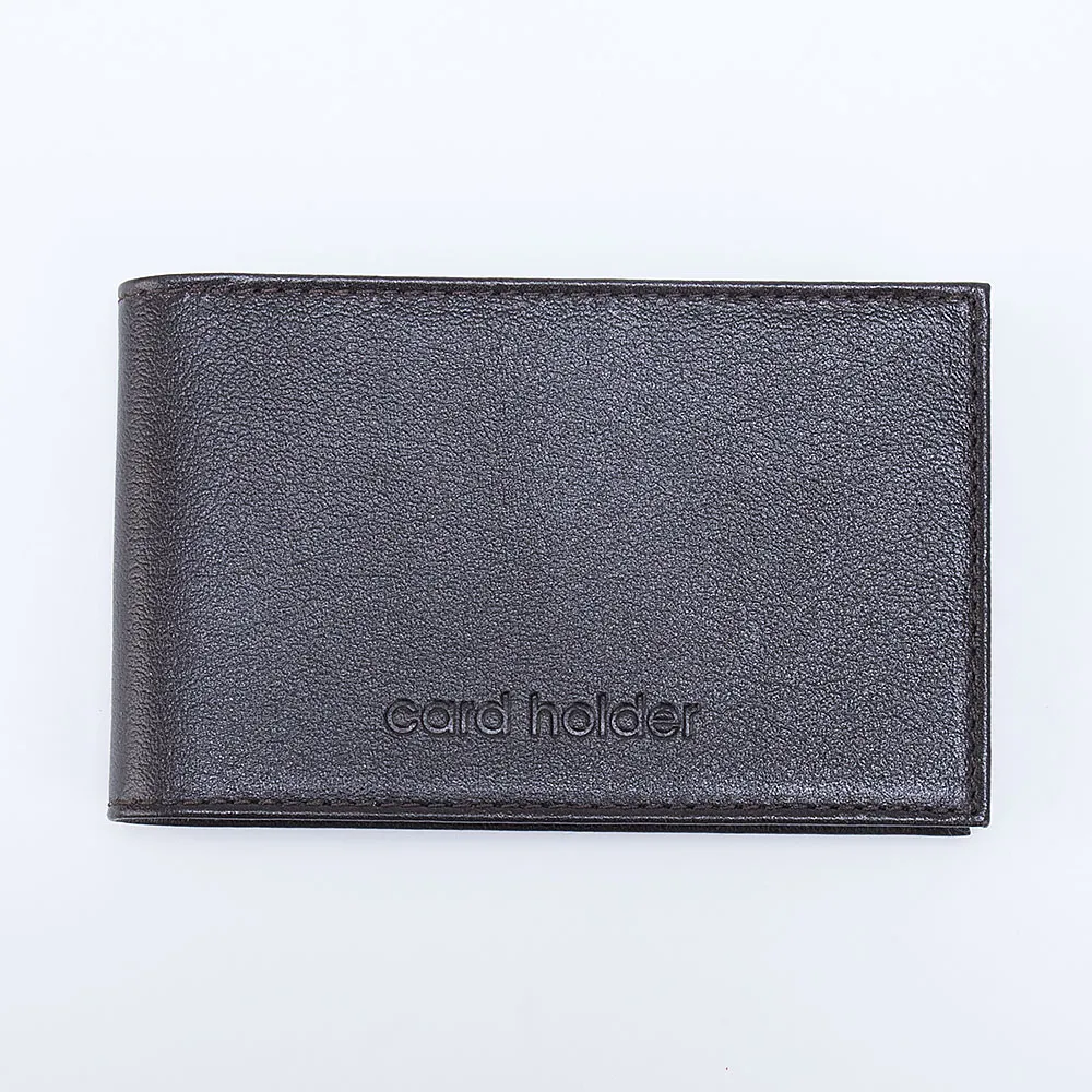 Классическая карманная визитница от бренда Poshete из новой коллекции Грейд. Выполнена из натуральной кожи в коричневом цвете. Внутри двадцать прозрачных кармашков для карточек и два дополнительных прорезных кармашка, слева и справа на обороте обложки с овальными отверстиями под большой палец, для удобного вынимания. Аксессуар без застёжки, раскрывается книжкой. Хорошо сочетается с другими аксессуарами из той же коллекции.