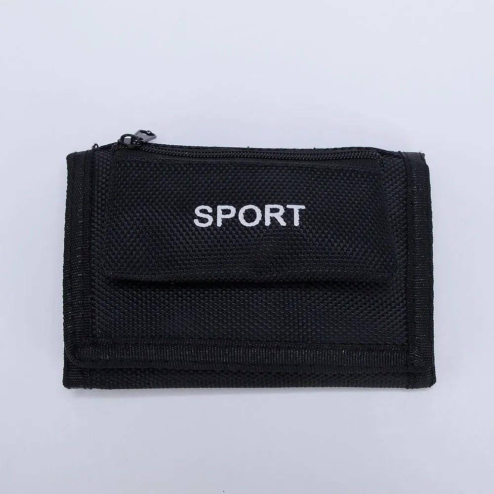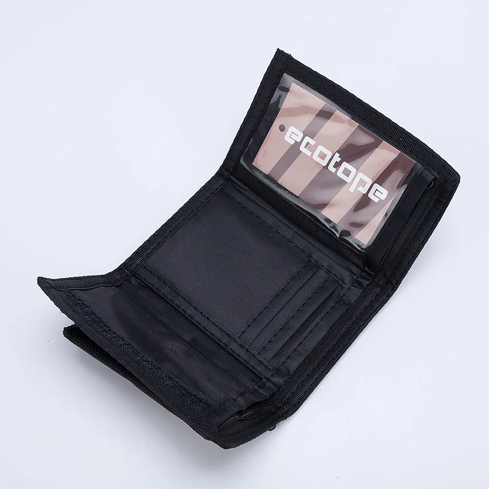 Спортивный кошелек Ecotope выполнен из плотного текстильного материала черного цвета с контрастной надписью «SPORT». Внутри отделение для купюр, карман на молнии, несколько кармашков для карточек и кармашек-окошко. Снаружи карман для монет на молнии. Аксессуар с застежкой на липучку, складывается с двух сторон к центру.