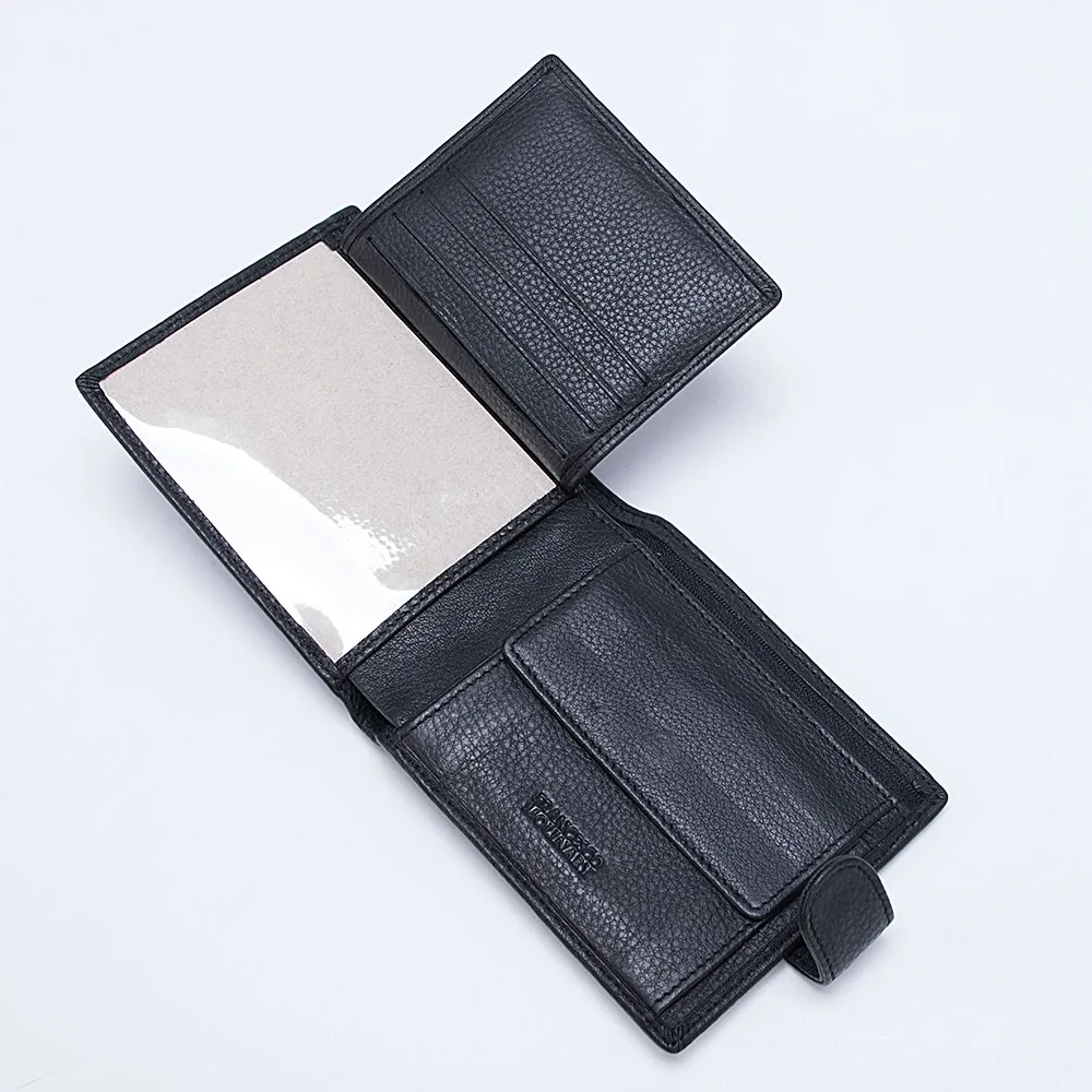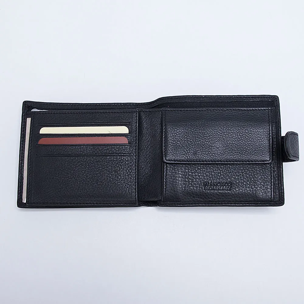 Кошелек из натуральной мягкой матовой кожи от бренда Francesco Molinary для мужчин. Модель с одним отделением для купюр на молнии и одним без застежки, также внутри карман для монет на кнопке и множество прорезей для пластиковых карт. Аксессуар с застежкой на металлическую кнопку.