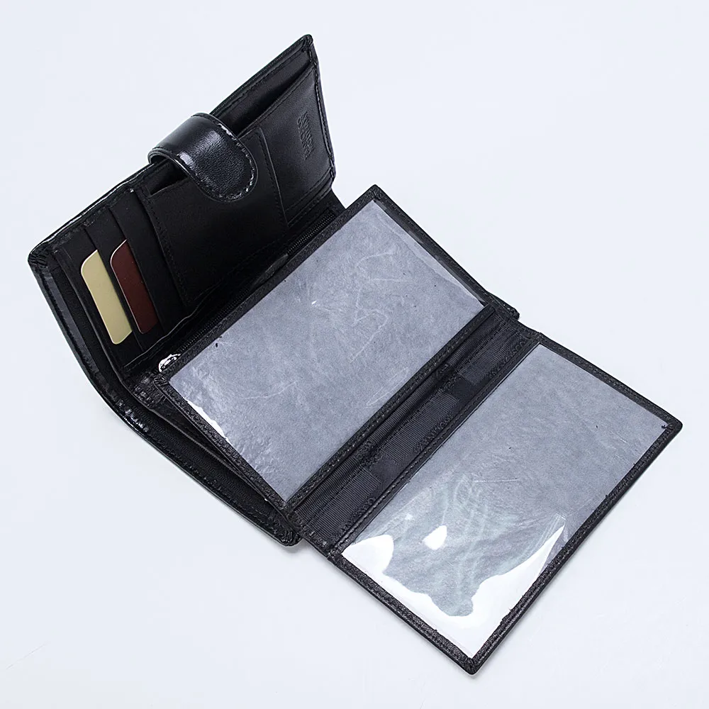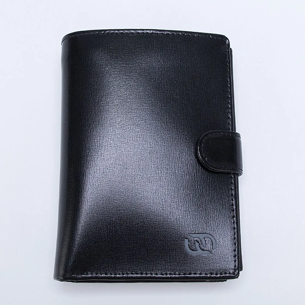 Стильный мужской кошелек Francesco Molinary из натуральной мягкой кожи с естественной фактурой и серебристой металлической фурнитурой. Внутри два отделения для купюр, карман для монет на кнопке, несколько прорезей для пластиковых карт и отделения для паспорта и автодокументов. Аксессуар с застежкой на кнопку.