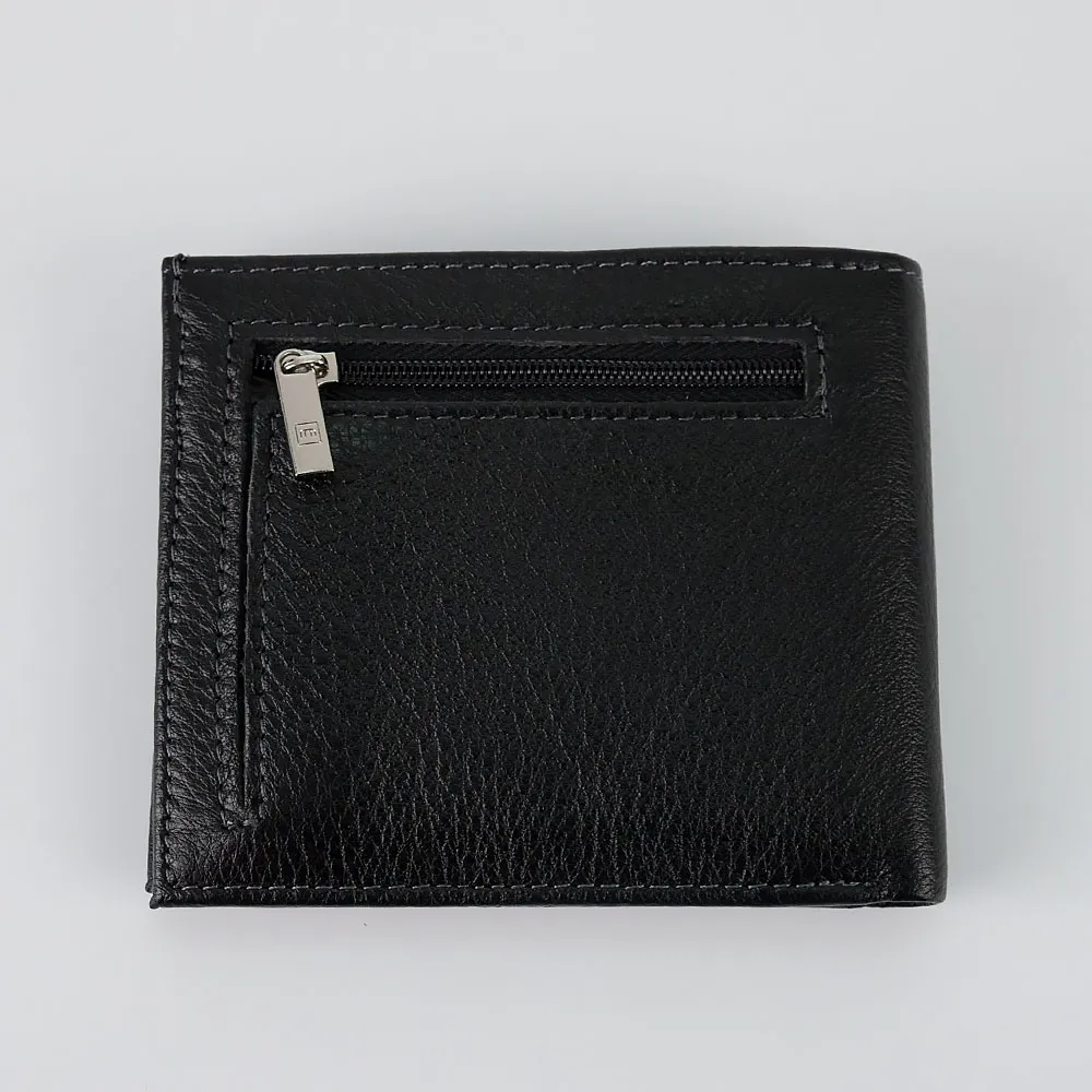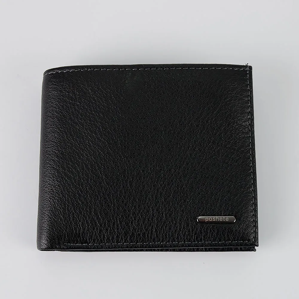 Компактный мужской кошелёк от бренда Poshete выполнен с чувством стиля из натуральной кожи в чёрном цвете. Внутри отделения для купюр и пластиковых карт. Кошелёк складывается пополам, фиксируется скрытым магнитом, раскрывается книжкой. Снаружи есть карман на молнии.