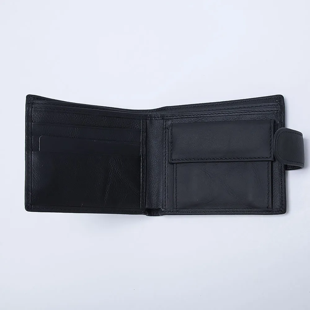 Классический мужской кошелек популярного бренда Poshete сшит из качественной натуральной кожи универсального черного цвета. Внутри два отделения для купюр, карман на кнопке для монет, три отсека для пластиковых карт. Аксессуар закрывается на узкий клапан, с лицевой стороны декорирован фирменным тиснением.