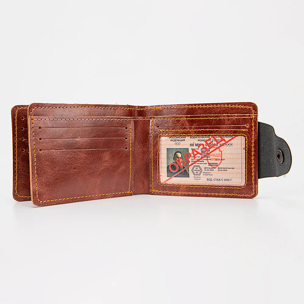 Кошелек от торговой марки Poshete из натуральной кожи черного цвета. Закрывается хлястиком на кнопке, имеет одно сложение. Внутреннее наполнение в коричневом цвете; имеется перегородка с карманами для карт, в том числе карманом на кнопке с RFID-защитой от считывания: отделение для купюр, карман-окошко, карманы для карт.