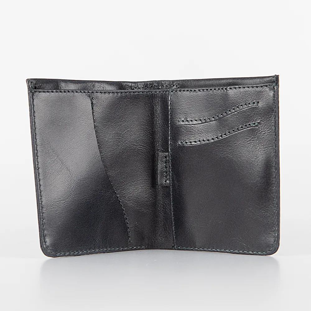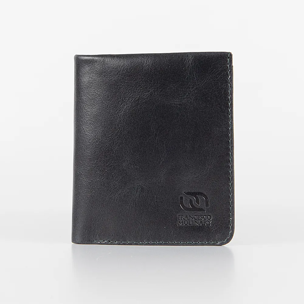 Кошелек от торговой марки Francesco Molinary из натуральной кожи синего цвета. Модель раскрывается книжкой. Внутри: отделение для купюр, карманы для карт.