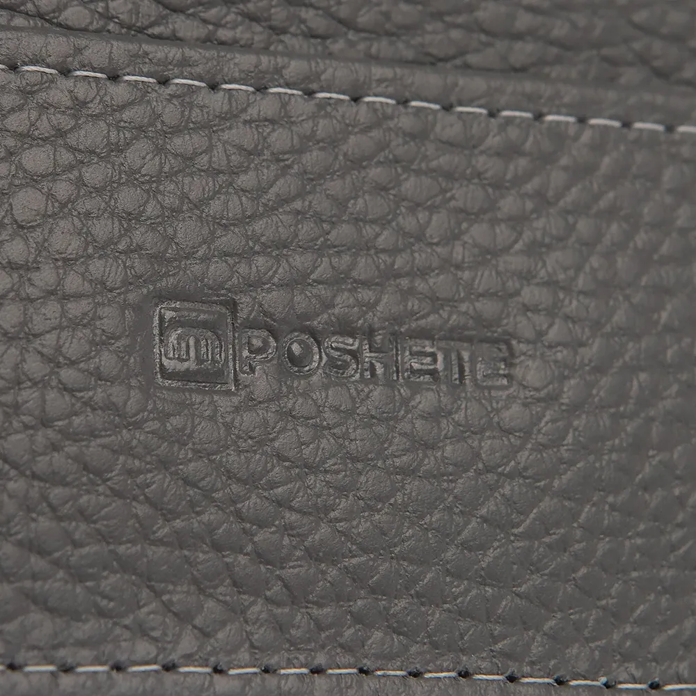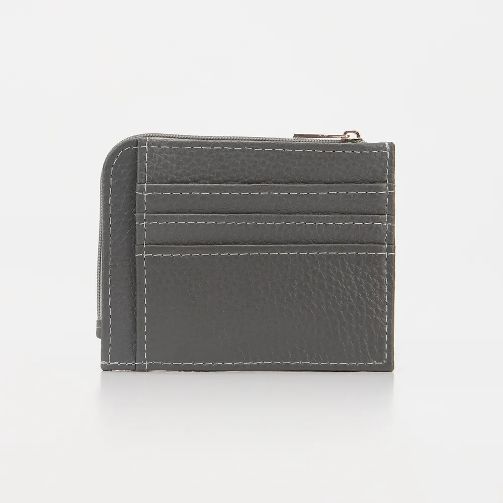Кредитница от торговой марки Poshete из натуральной кожи серого цвета. Модель с отделением на молнии и карманами для карт по обеим сторонам.