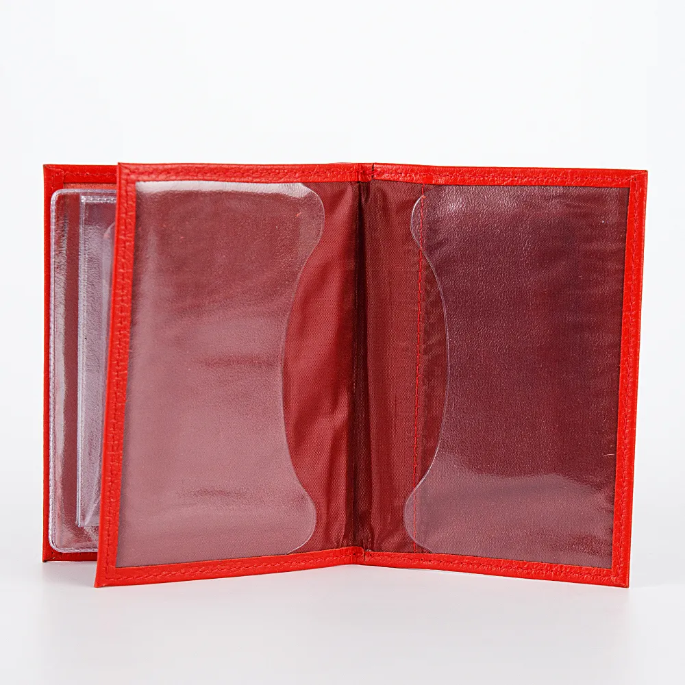 Классическая обложка для паспорта и автодокументов от бренда Poshete. Аксессуар красного цвета из натуральной мягкой кожи. Внутри отделение для паспорта и разноразмерные отделения для автодокументов. Модель без застежки.