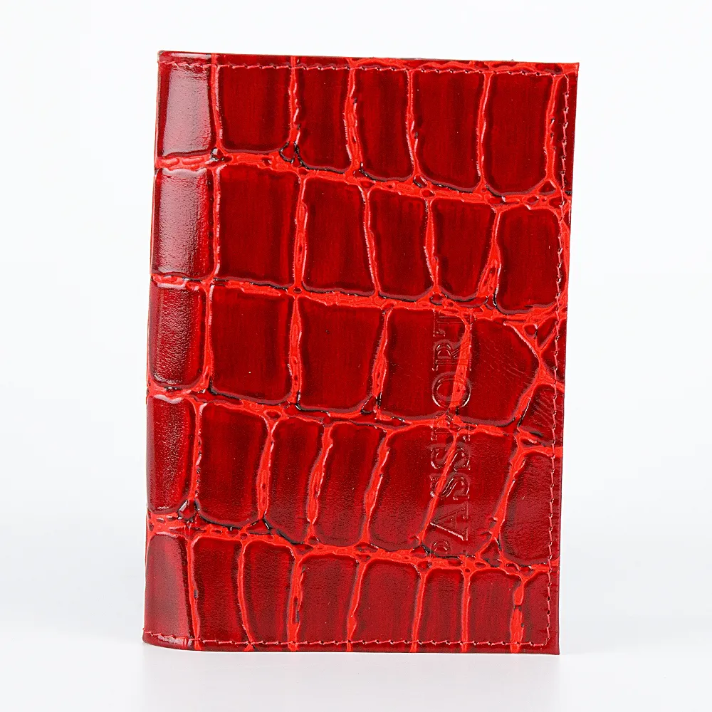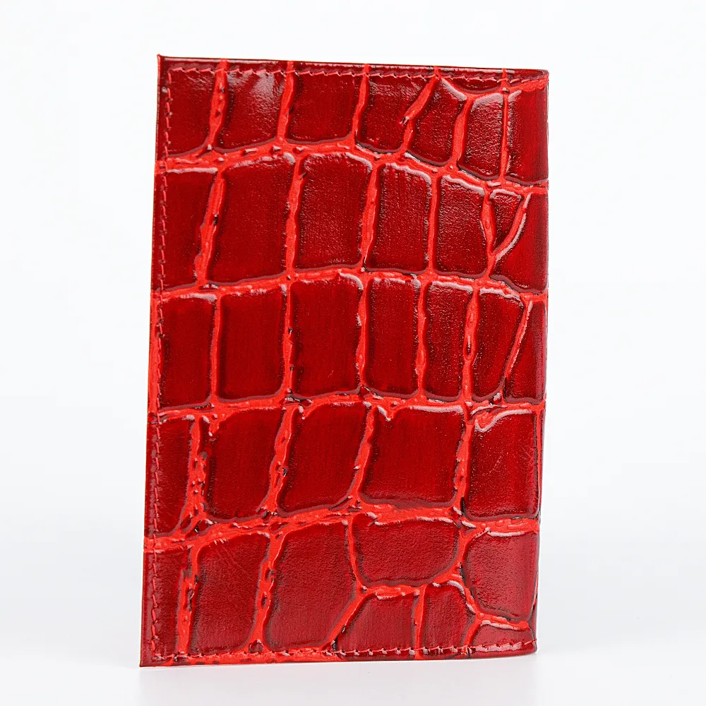 Обложка для паспорта от бренда Poshete. Аксессуар из натуральной мягкой кожи классического красного цвета с тиснением под кожу рептилии.