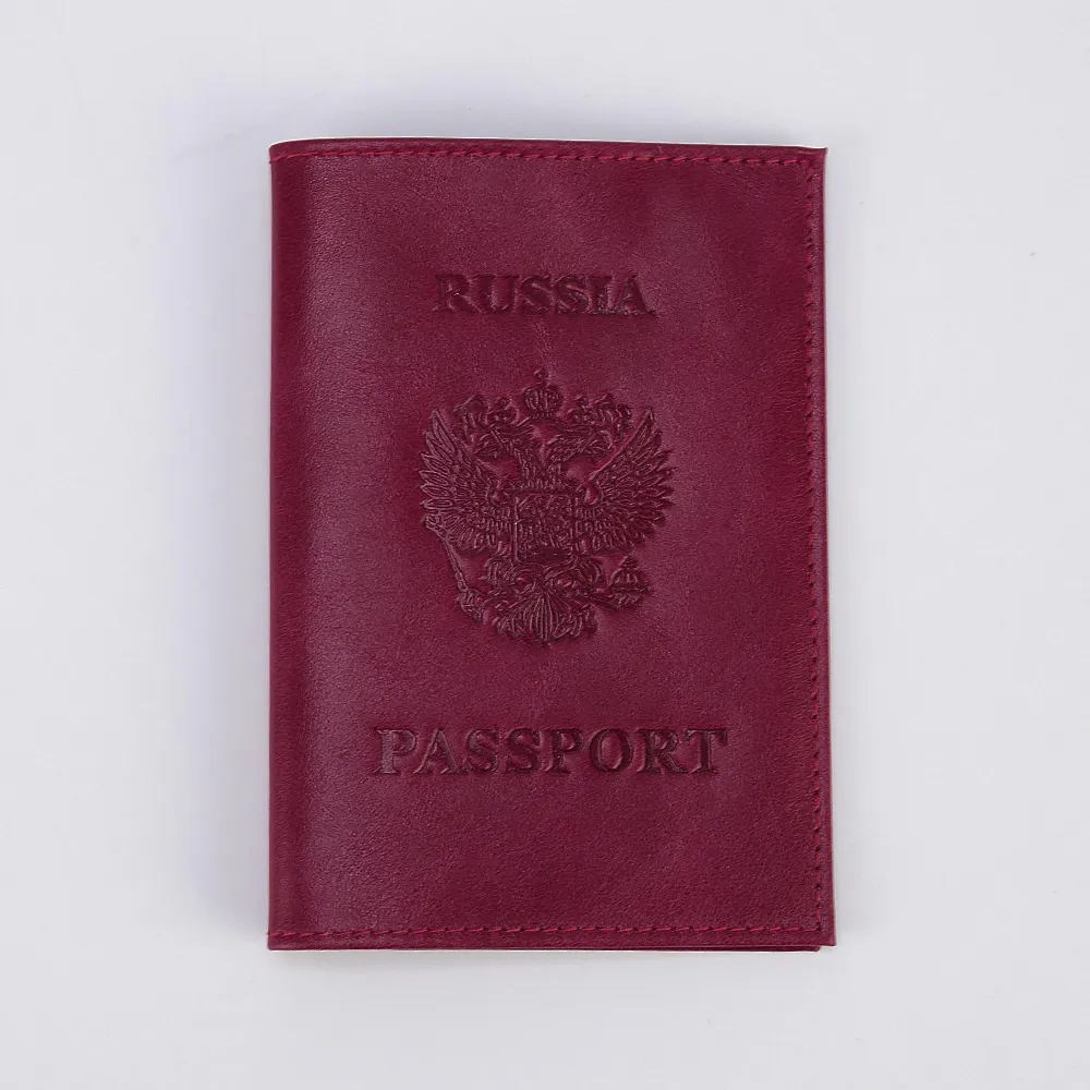 Обложка на паспорт от бренда Poshete выполнена из натуральной кожи красного цвета. Модель раскрывается книжкой. Внутри – прозрачные клапаны. Лицевая сторона декорирована тиснением с российским гербом.