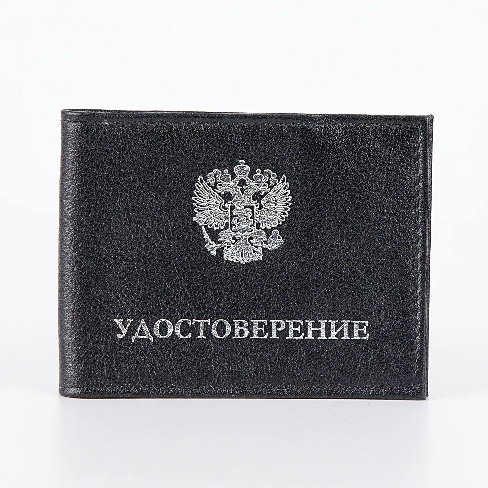 Обложка на студенческий билет от бренда Poshete выполнена из натуральной мягкой кожи шоколадного цвета с изображением герба России и надписью серебряного цвета.