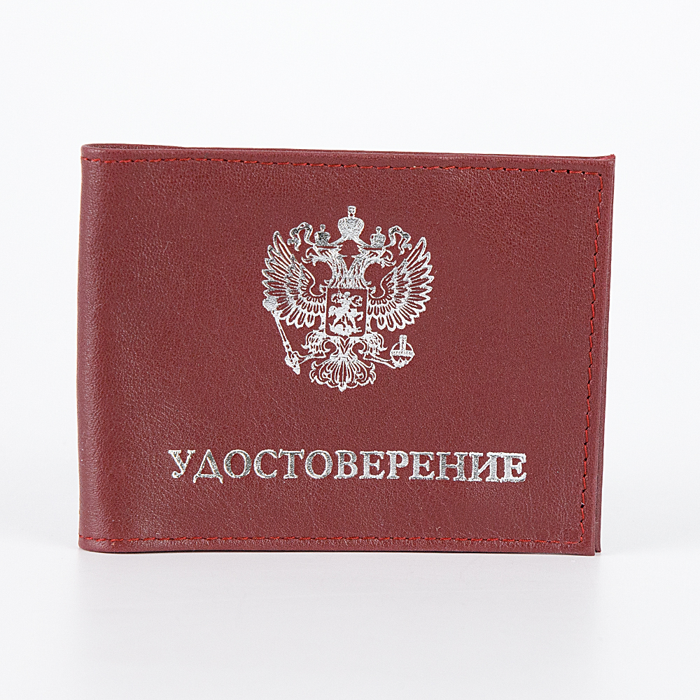 Обложка на студенческий билет от бренда Poshete выполнена из натуральной мягкой кожи шоколадного цвета с изображением герба России и надписью серебряного цвета.