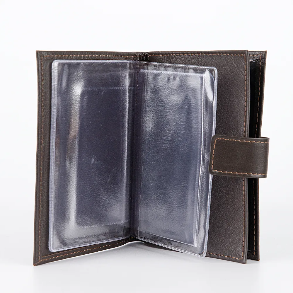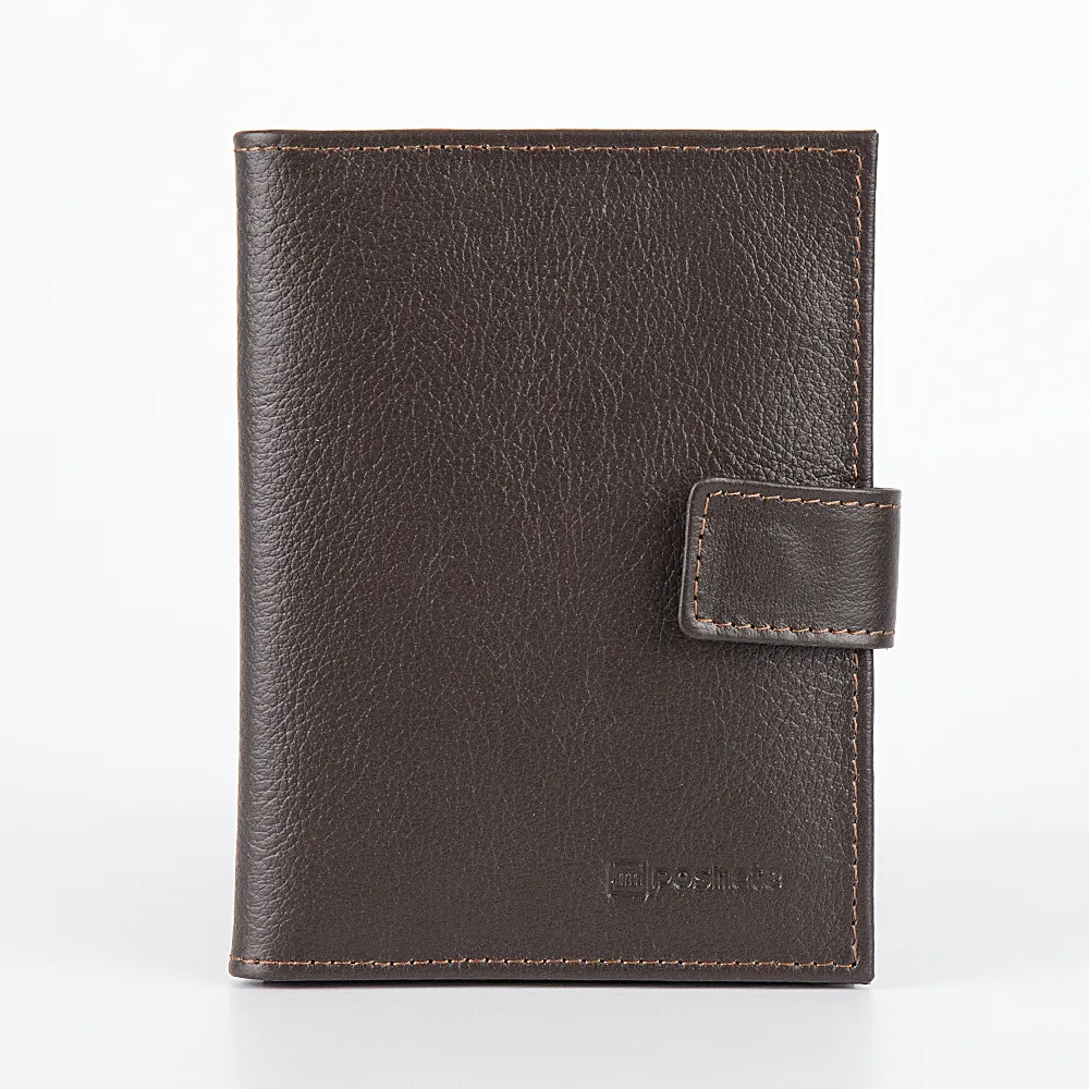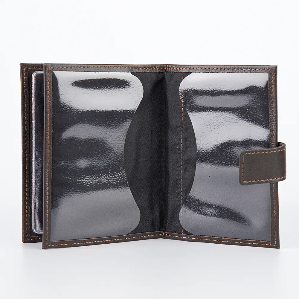 Классическая обложка для паспорта и автодокументов от бренда Poshete. Аксессуар коричневого цвета из натуральной мягкой кожи. Внутри отделение для паспорта и разноразмерные отделения для автодокументов. Модель с застежкой на металлическую кнопку.