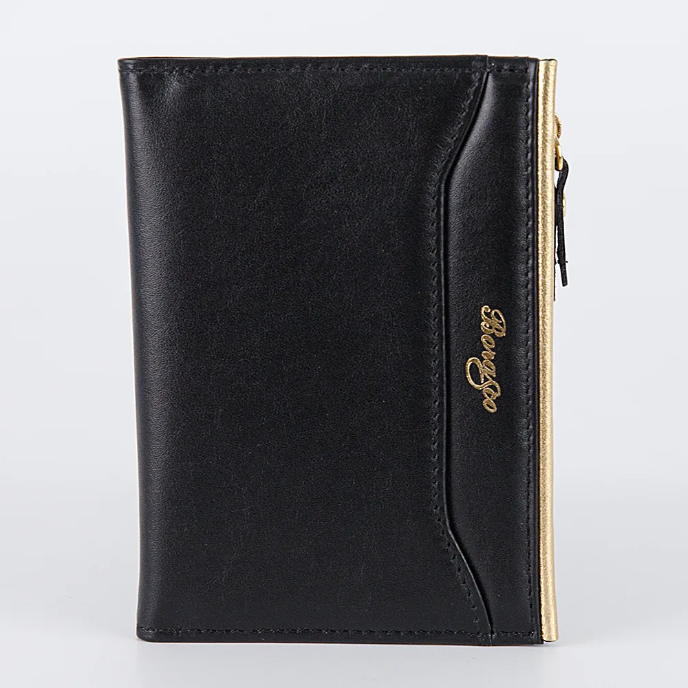 Стильная обложка для паспорта эксклюзивной коллекции от торговой марки Borasco изготовлена из натуральной кожи в сочетании черного и золотого цвета. Модель с карманами для карт, карманом на молнии с пуллером, декорированным стразой.